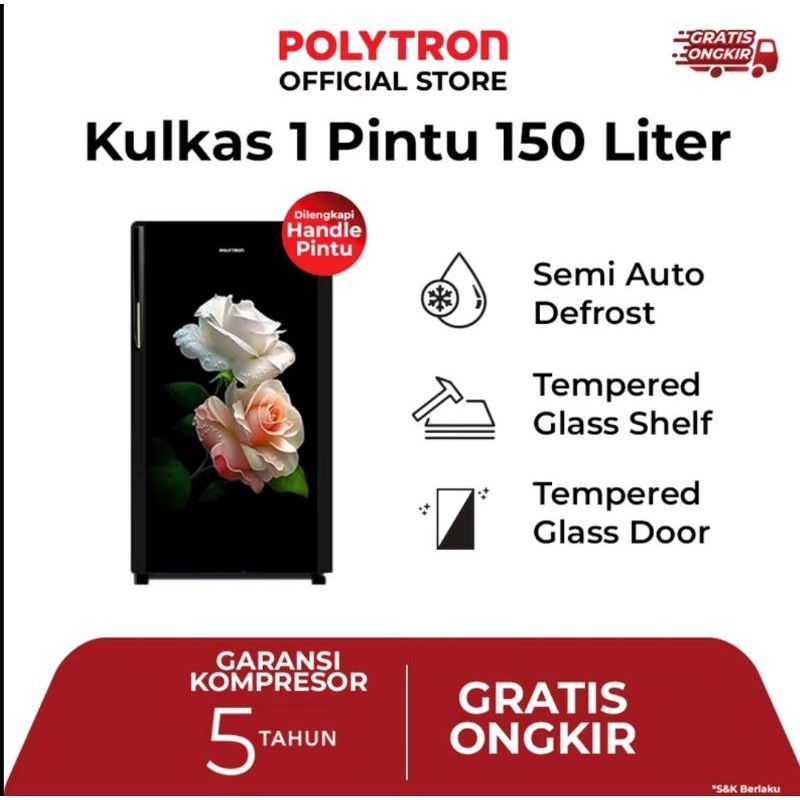 POLYTRON KULKAS 1 PINTU 142 LITER PRA-15DRD / PRA 15 DRD