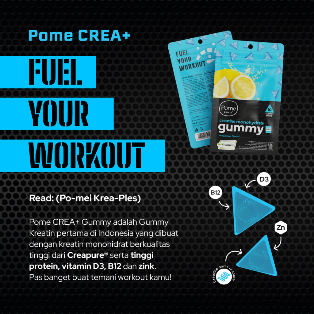 Pome CREA+ (Made with Creapure) - High Protein Creatine Gummy with Vitamin B12, D3, and Zinc (Tingkatkan performa atletik & percepat recovery setelah latihan)