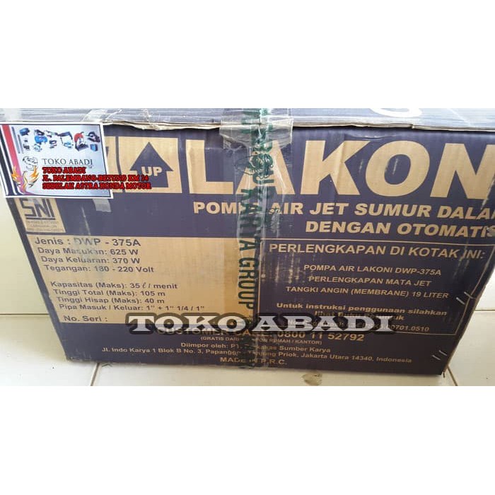 Pompa Air Jet Pump LAKONI DWP-375A ( sumur dalam 40m)