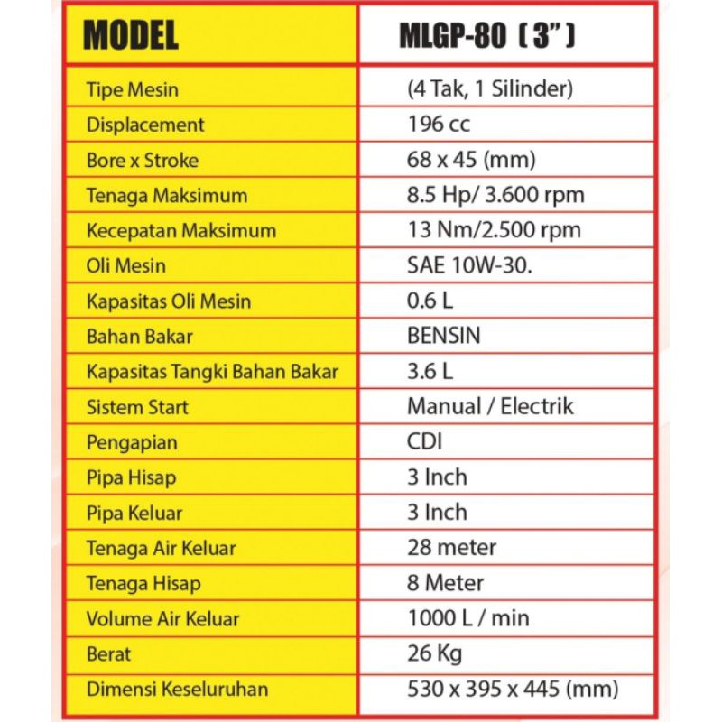 Pompa Alkon Pompa Sawah MLGP80 Motoyama