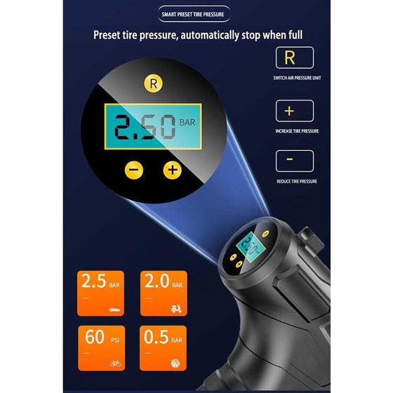 Pompa Angin Ban Mobil Elektrik Listrik Dc 12 Volt Inflator Mini Electric Car Tire Pump Kompa Sepeda Motor Balon Tenaga Baterai Lcd Pengukur Tekanan Portable Tanpa Injak Murah Bagus