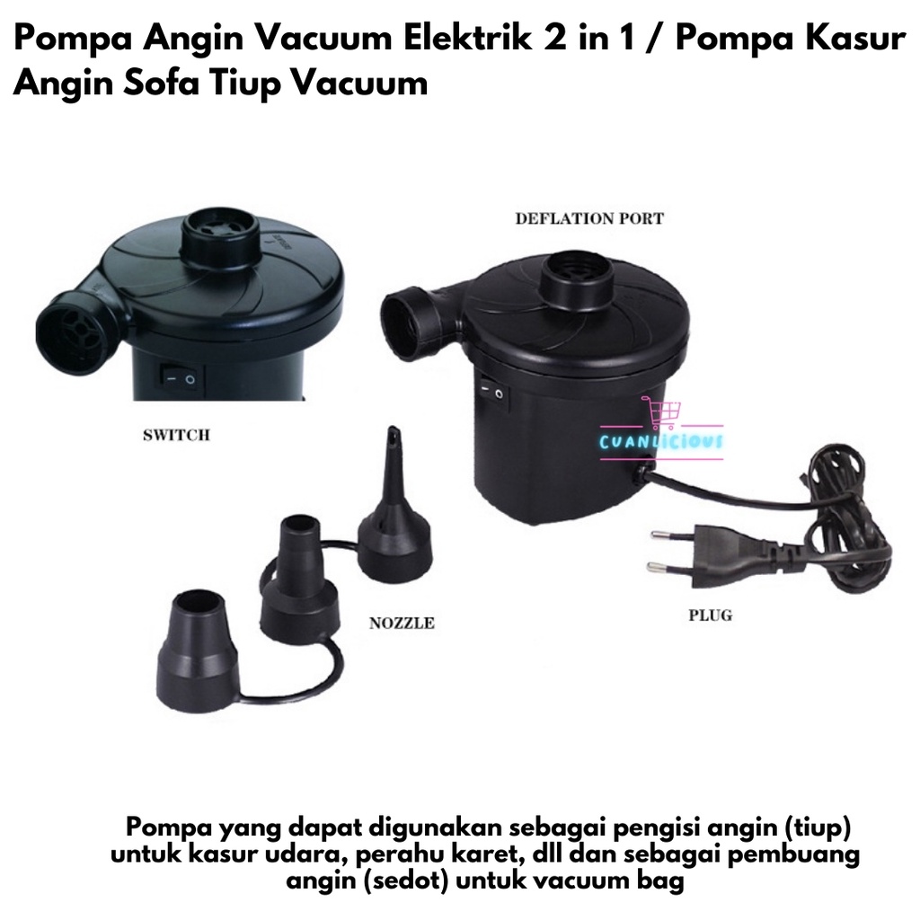 Pompa Angin Vacuum Elektrik 2 in 1 / Pompa Kasur Angin Sofa Tiup Vacuum