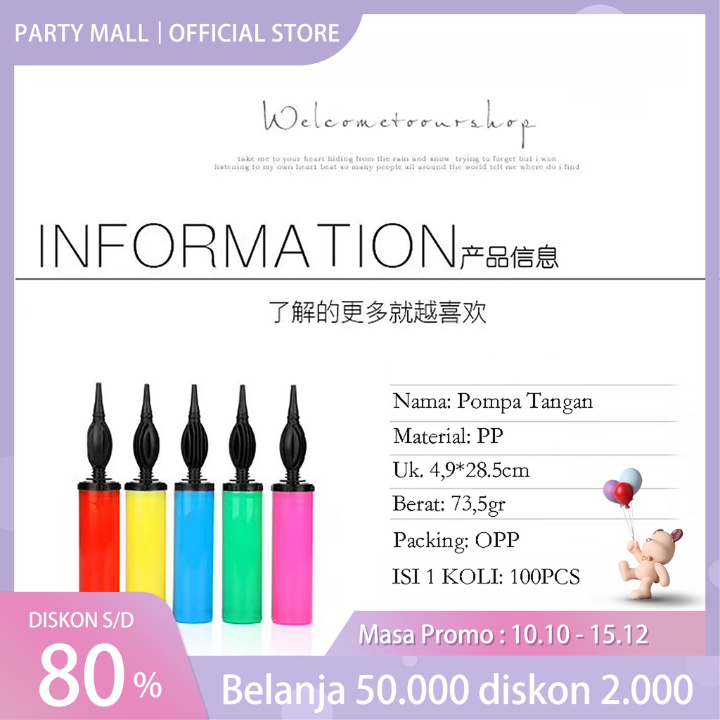Pompa Balon Tangan Manual Warna Warni / Pompa Tangan