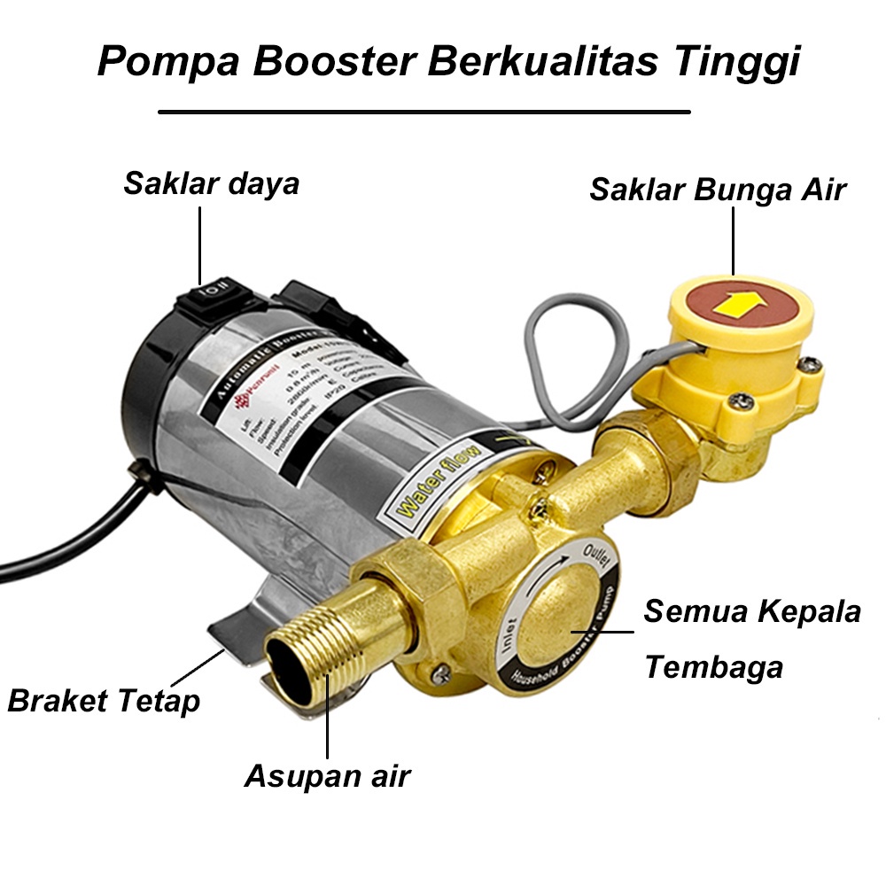 Pompa Booster Pendorong 100Watt Mesin Pendorong Air Shower Water Heater Booster Pompa Booster Otomatis