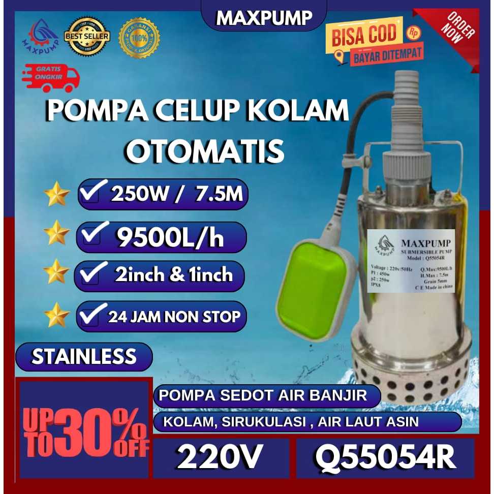 MAXPUMP COD Pompa Celup Air Kotor Submersible Pump Otomatis 2 Inch Q55054R Pompa Celup Full Stainless Sirkulasi Kolam Ikan 24 jam untuk Air Banjir Air Laut & Kotor