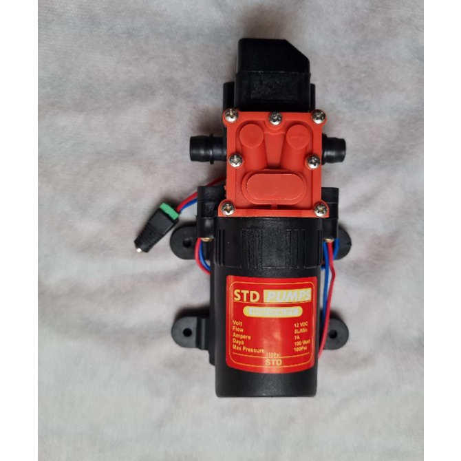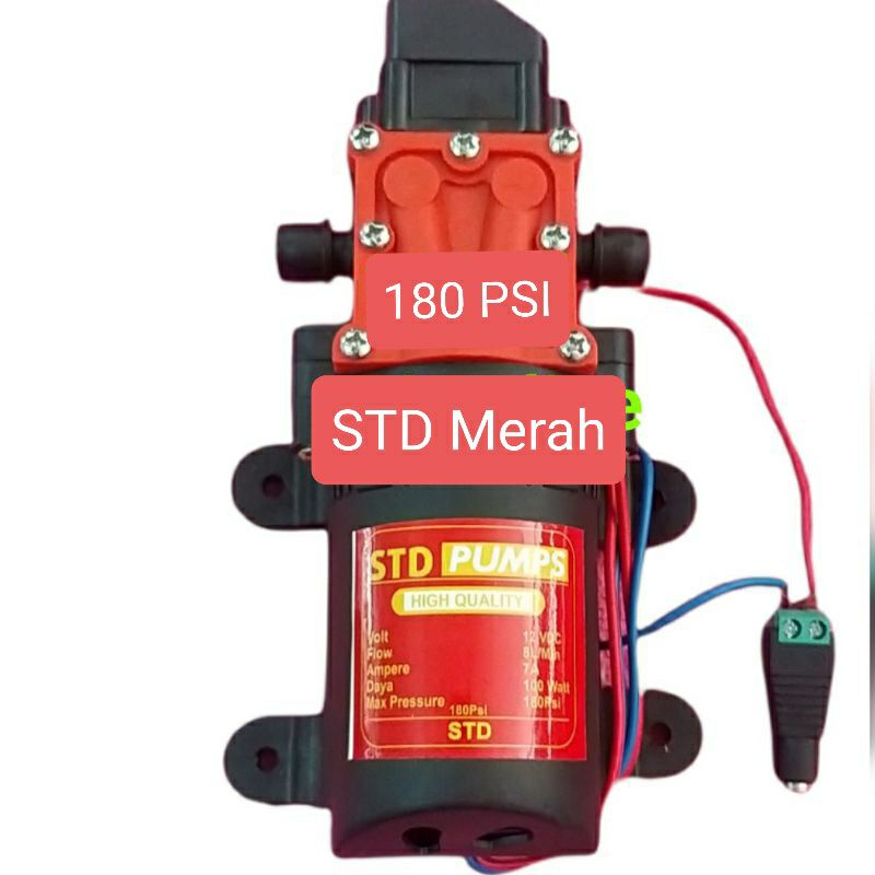 Pompa air mini STD Merah red pump 12v 8 LPM 180 PSI 100W 12V 7A sprayer steam cuci motor mobil otomatis cut off