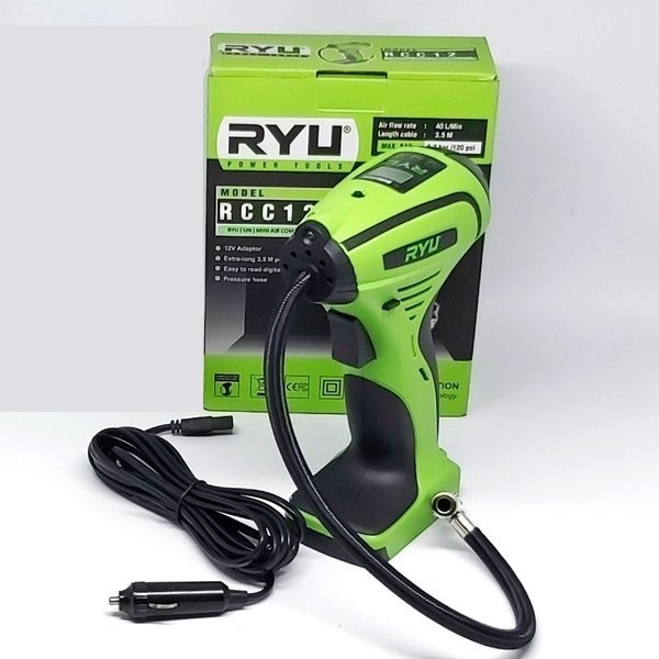 Pompa angin elektrik portable RYU Mini Air Compressor 12 V RYU RCC 12 / Mini Kompressor /Alat Pompa Angin Ban Balon Digital