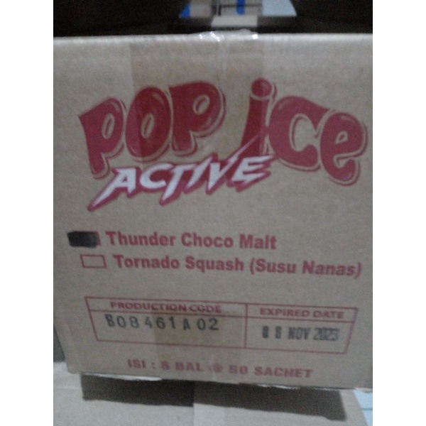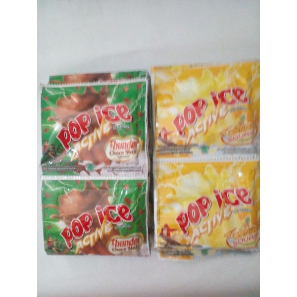 Pop Ice Active rasa Choco Malt dan Tornado Squash @25gr