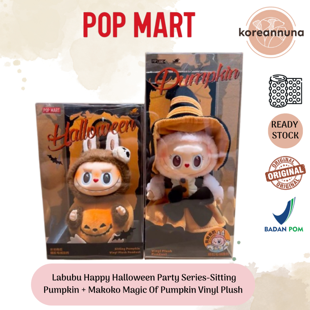 Pop Mart Labubu Happy Halloween Party Series-Sitting Pumpkin + Makoko Magic Of Pumpkin Vinyl Plush