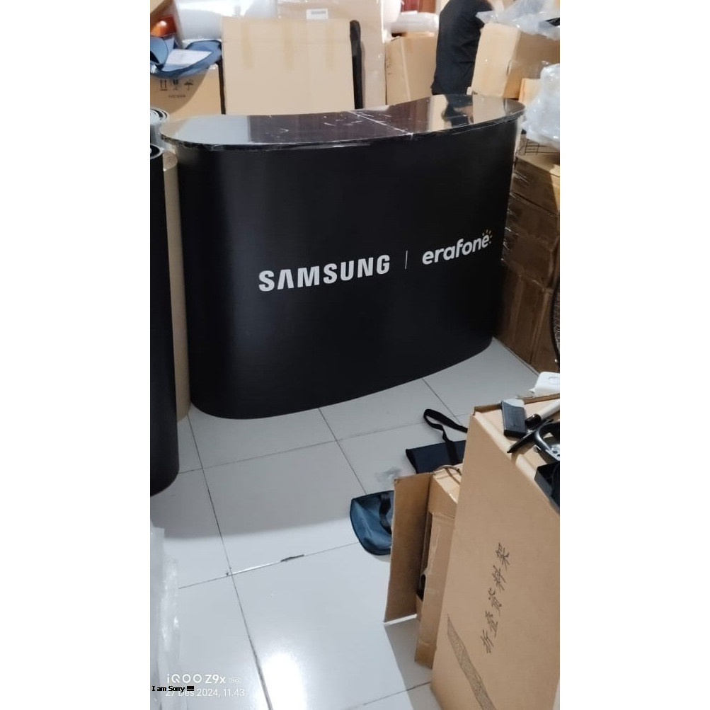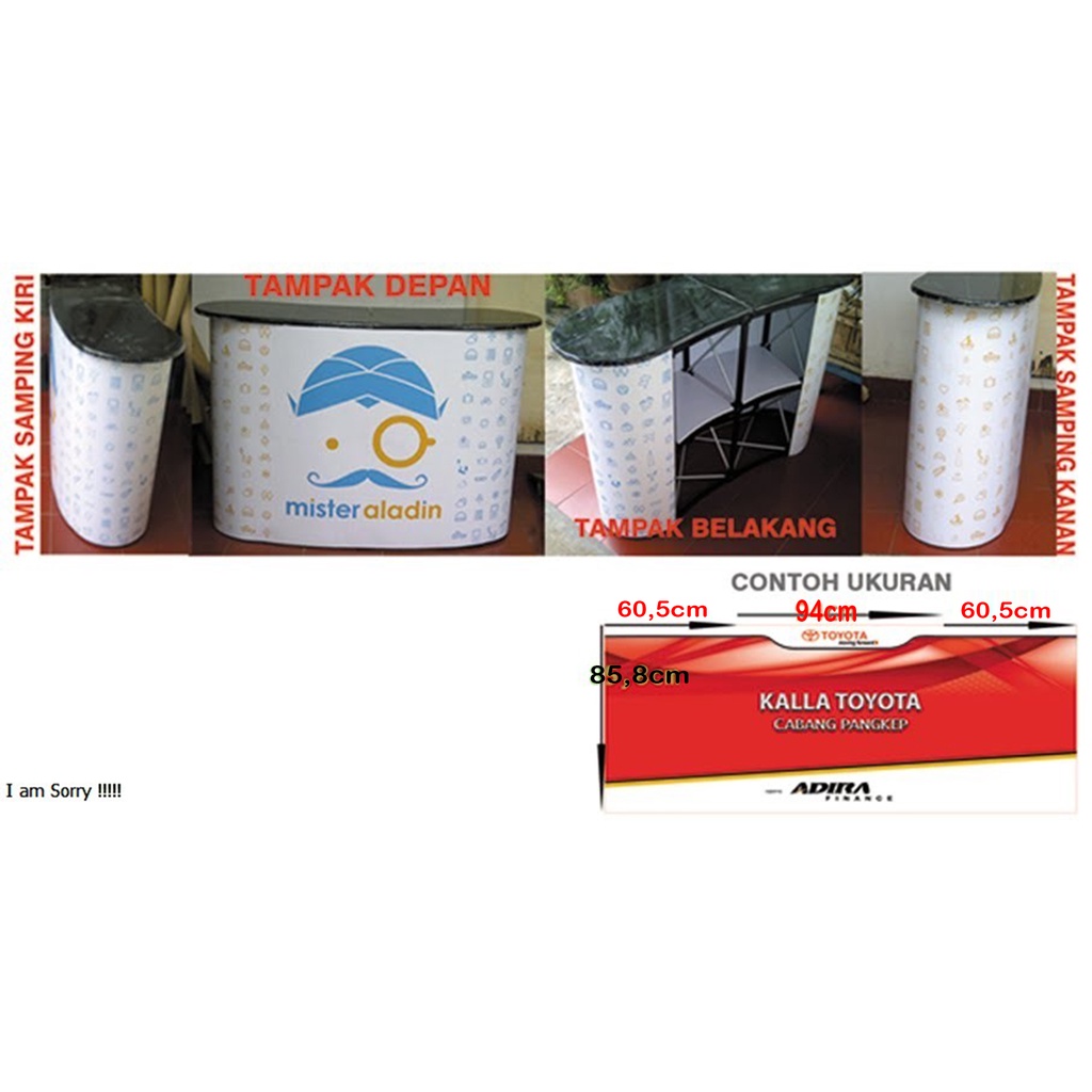 Pop up counter / pop up desk / meja pop up counter economis sudah termasuk stiker