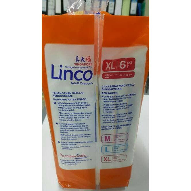 Popok Dewasa / Adult Diapers LINCO sixe XL isi 6 pcs