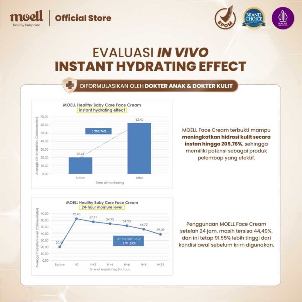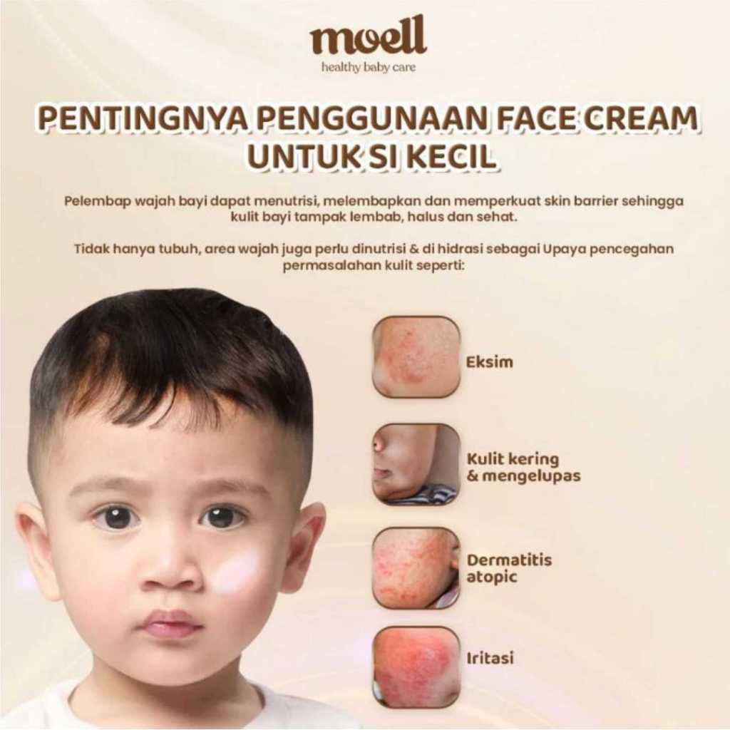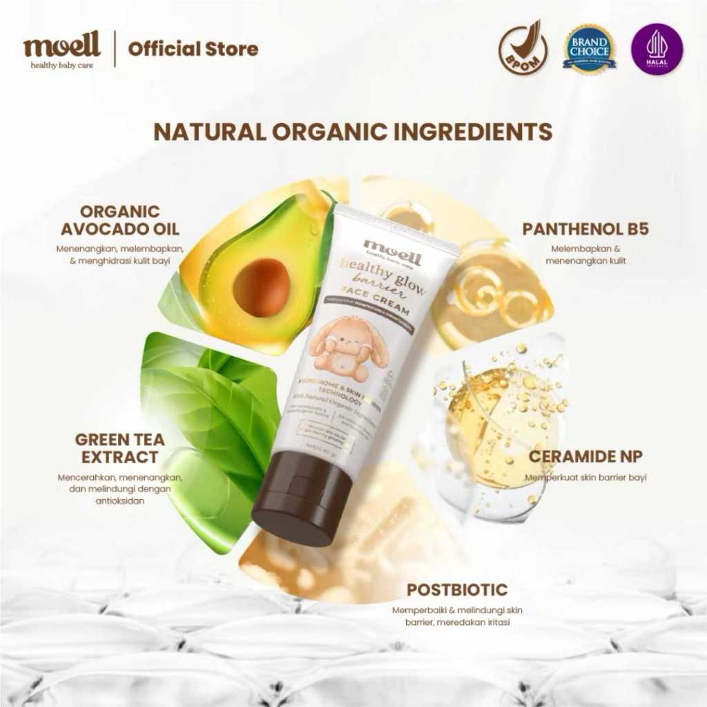 Bebechan - Moell Face Cream Healthy Glow Pelembab Wajah Anak dan Bayi - Moell Krim Muka Skin Barrier Moisturizer 40gr