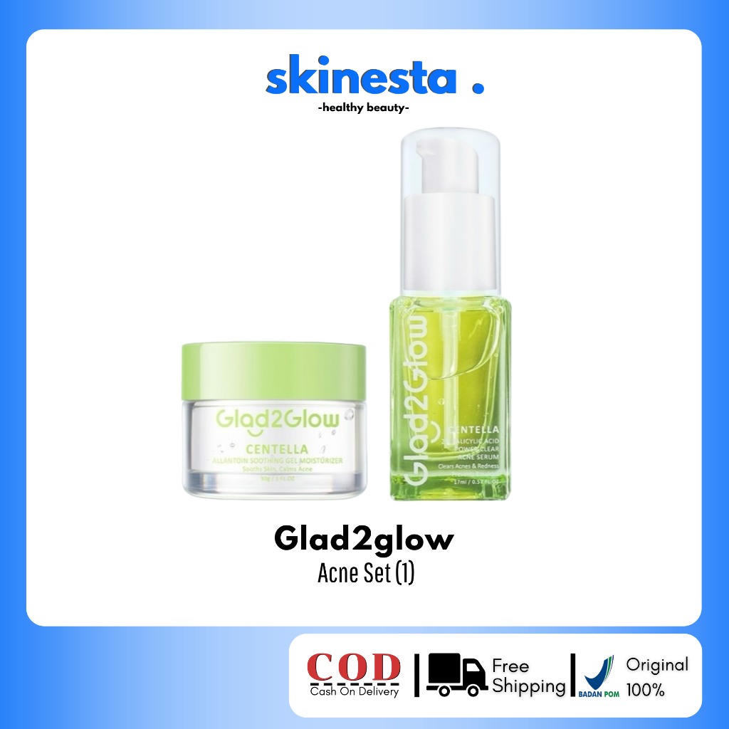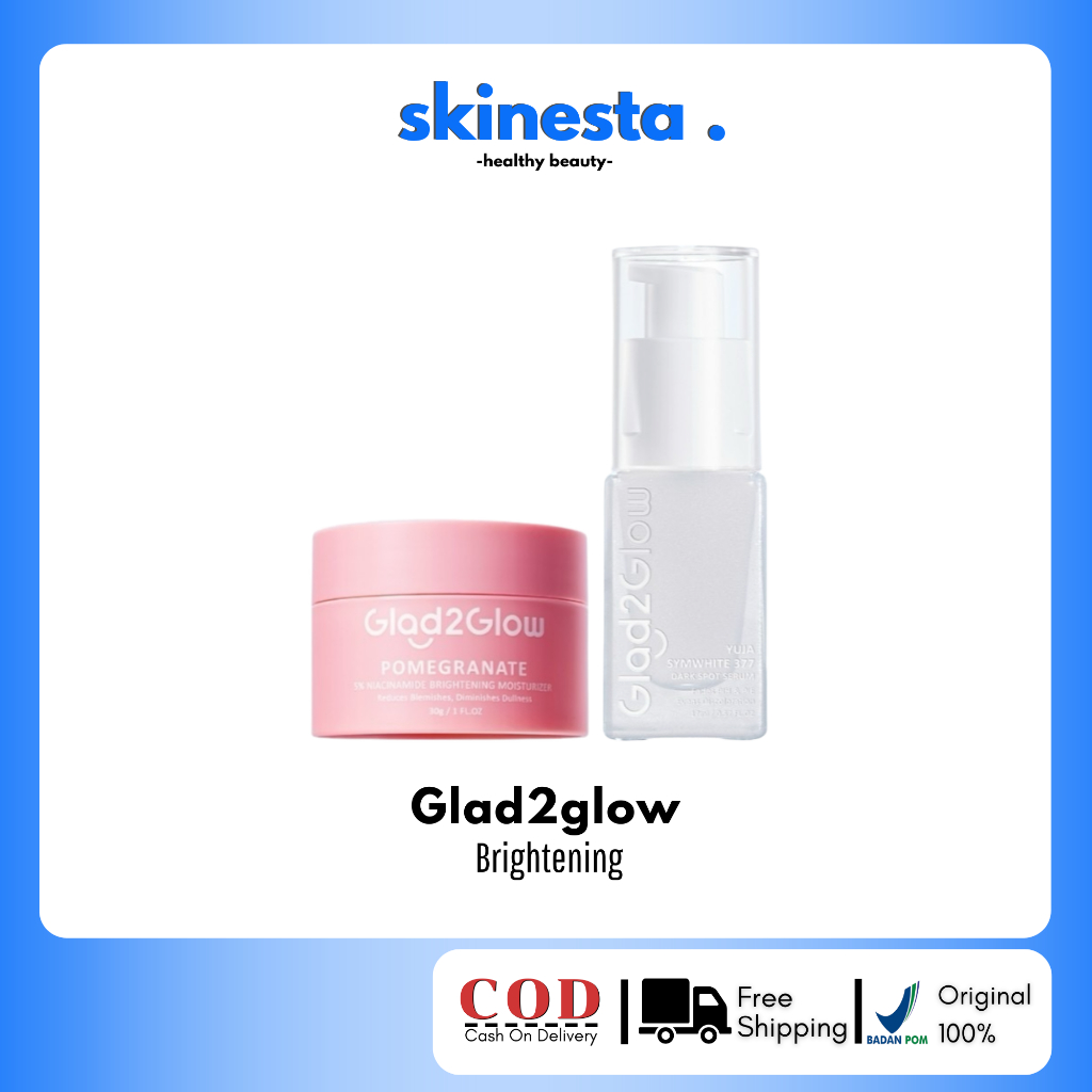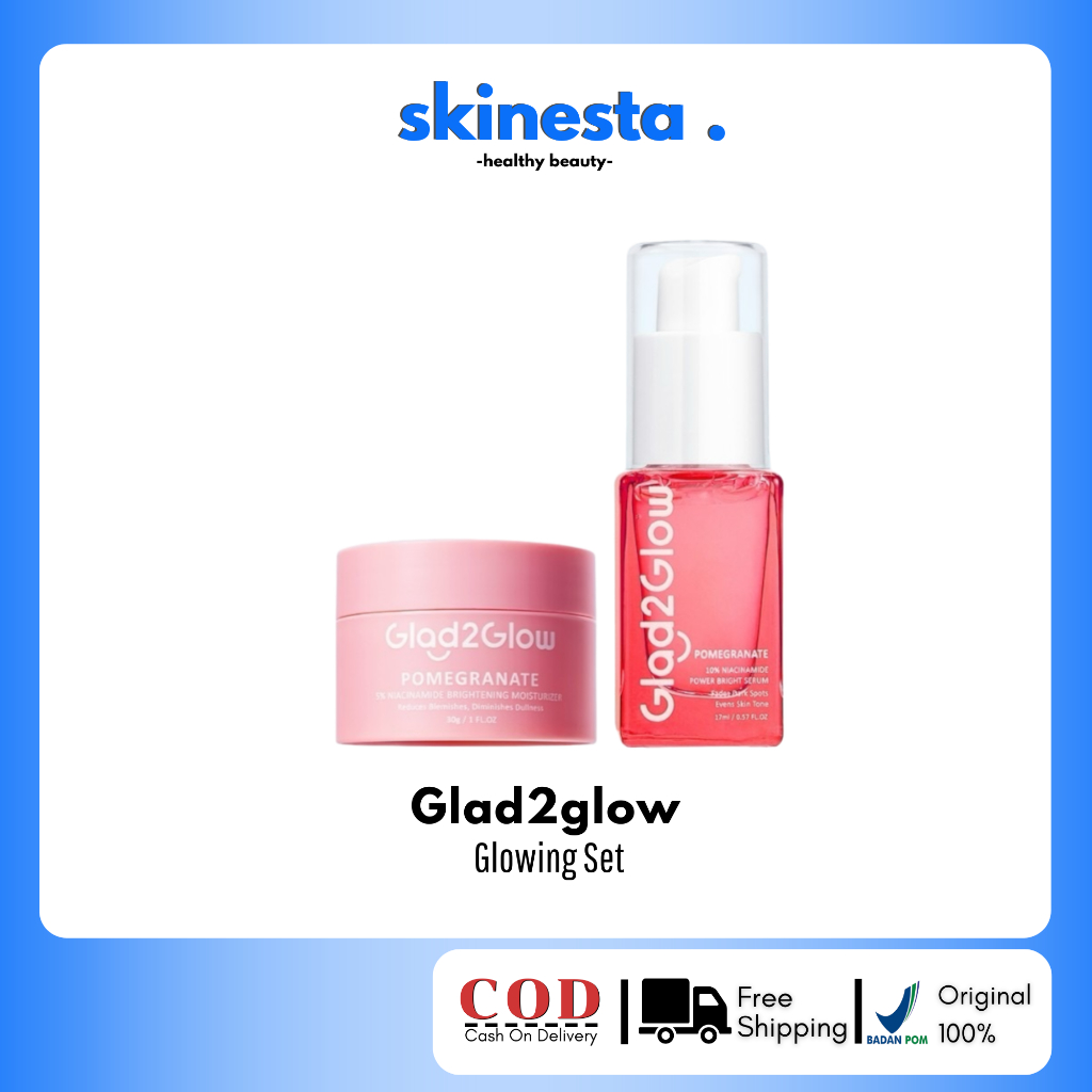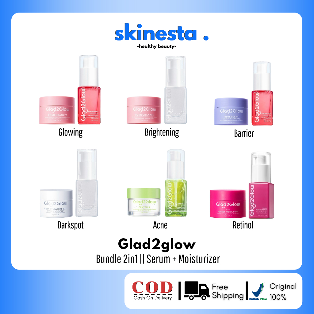 Glad2Glow 2PCS Skincare Paket Moisturizer + Serum Brightening Moisturizer Gel + Serum Glowing Anti Acne Bluberry Centella Pomegranate Peach Retinol Anti Darkspot