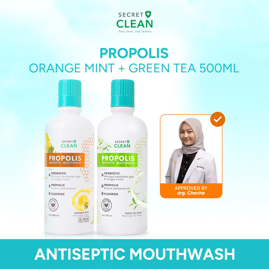 [500ml x 2pcs] Secret Clean Paket Propolis Antiseptic Mouthwash | Probiotic & Fluoride | Obat Kumur Antiseptik Halal