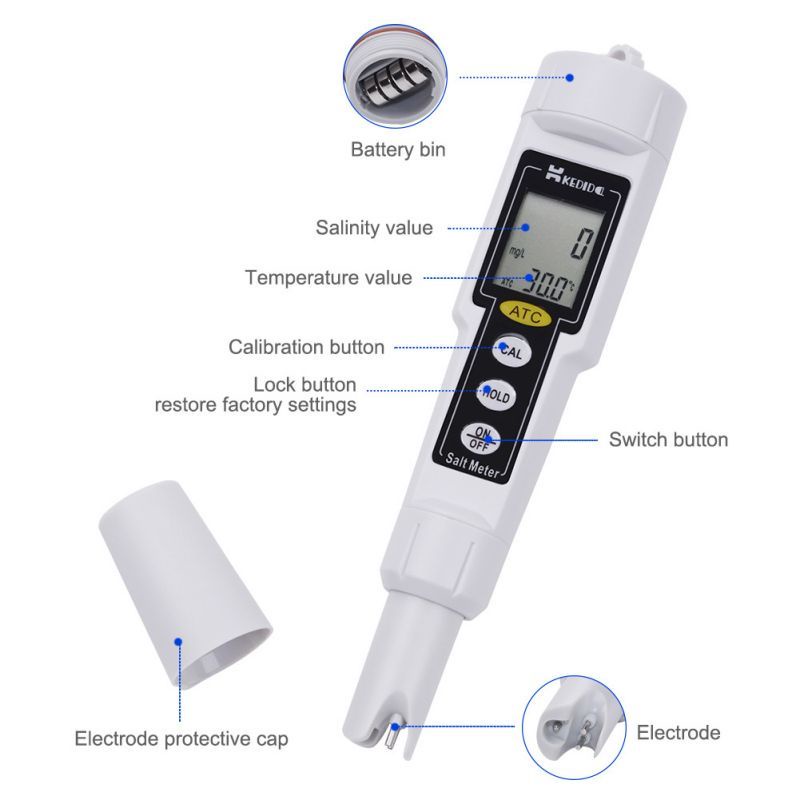 Portable Digital Salinity Meter Ct-3080 Kualitas Air Salinitas Air Tawar Pengukuran Kandungan Garam Detektor