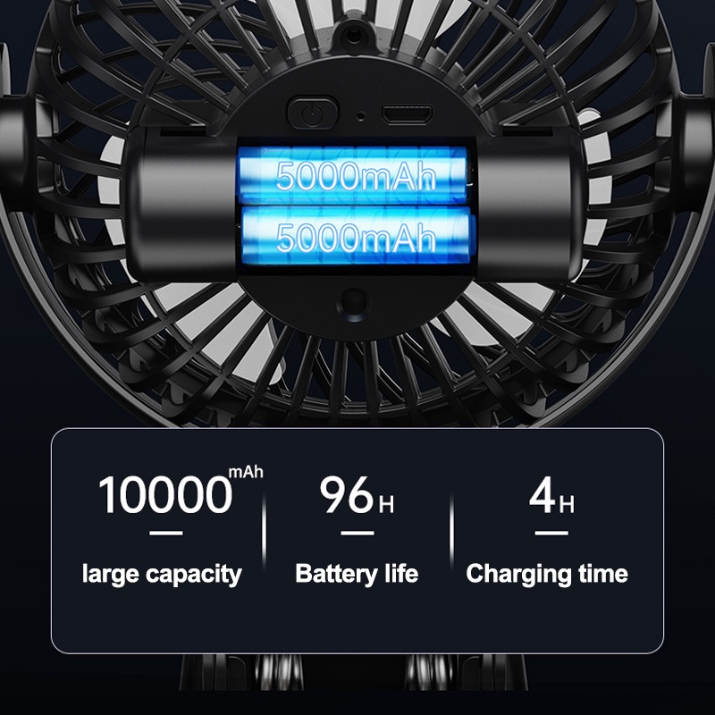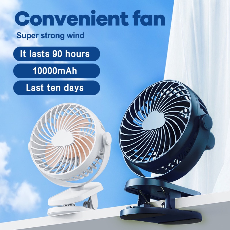 Portable Fan 10000mAh Mini Fan Kipas Handheld Clip Base Fan 3 Speed Strong Wind Desk Fan