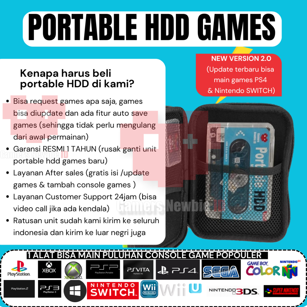 Portable HDD Games ONLY (Tanpa Stik) V.2.0, satu alat bisa main puluhan console games populer. (bisa request games apa saja)