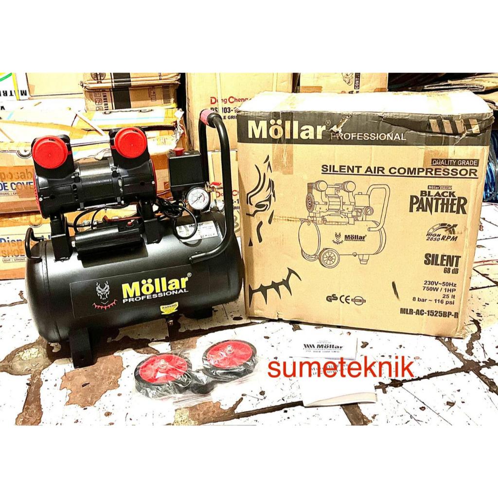 Portable Kompresor Mollar 1HP 25L Black Panther (Hitam) Tabung Besar 2850RPM Oiless Silent Kompresor Portable Mollar Black Panther 25Liter 1HP Tabung Besar