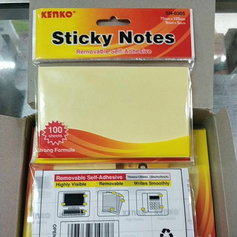 Post-it STICKY NOTES MMS 1 & MMS 654P (76mm x 76mm 5 warna)Kenko dan 655