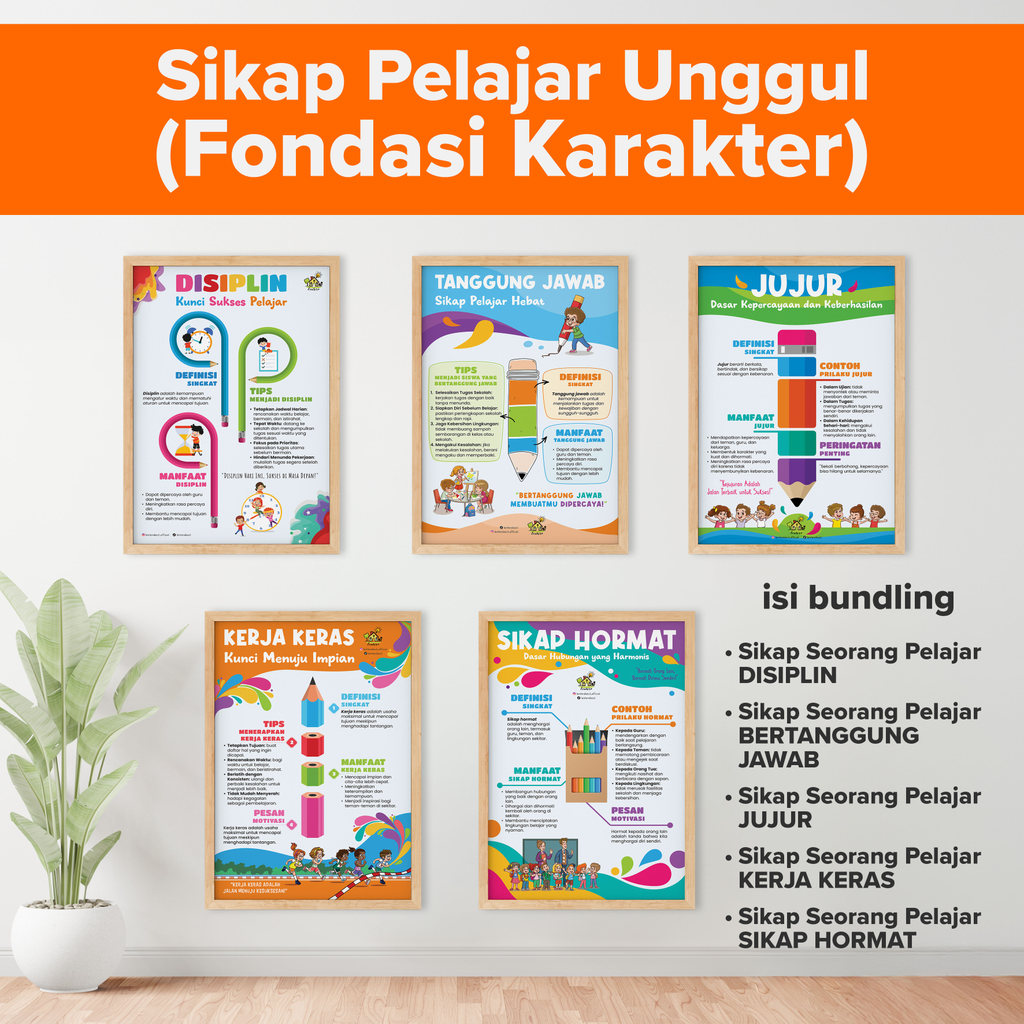 Poster Alat Peraga Edukasi Karakter Pelajar Pancasila Tata Krama Sekolah Budaya Malu Disiplin Jujur Mandiri Tanggung Jawab Sopan Etika Empati Kreatif Inovatif Media Pembelajaran Bimbingan Konseling BK Sekolah Visual Jelas