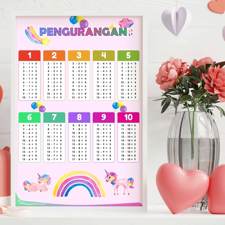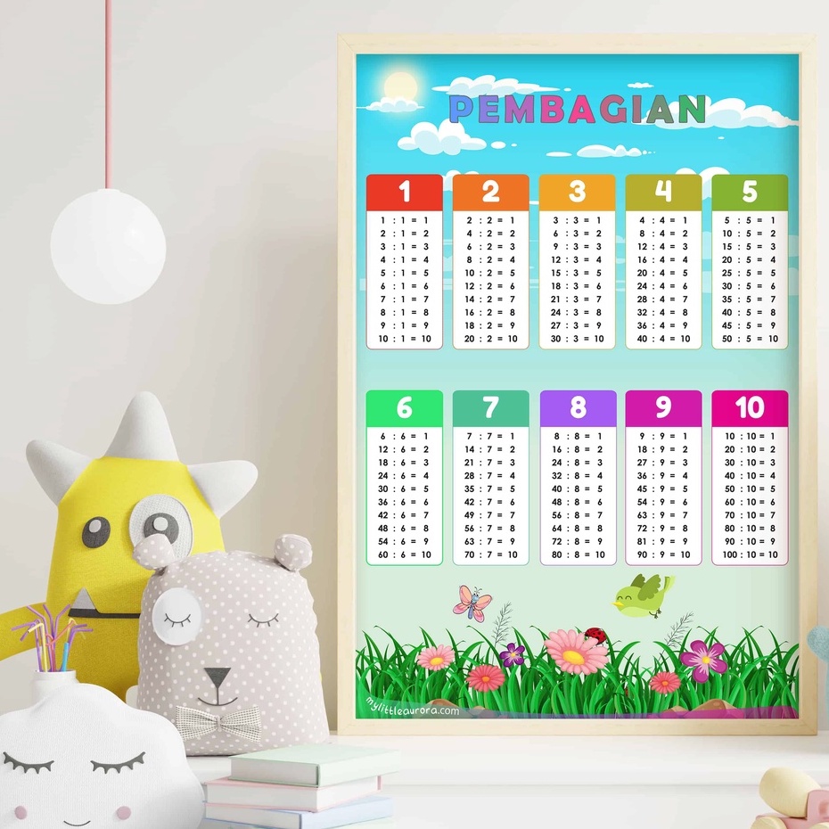 Poster ANGKA MATEMATIKA KALI BAGI JUMLAH KURANG TABEL PERKALIAN ANGKA ROMAWI PEMBAGIAN PENJUMLAHAN PENGURANGAN Pendidikan Anak TK PAUD SD