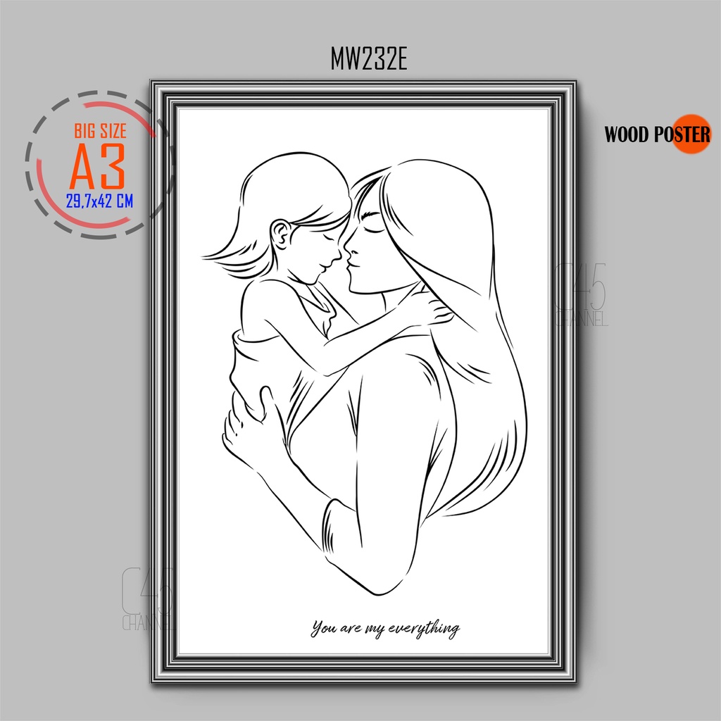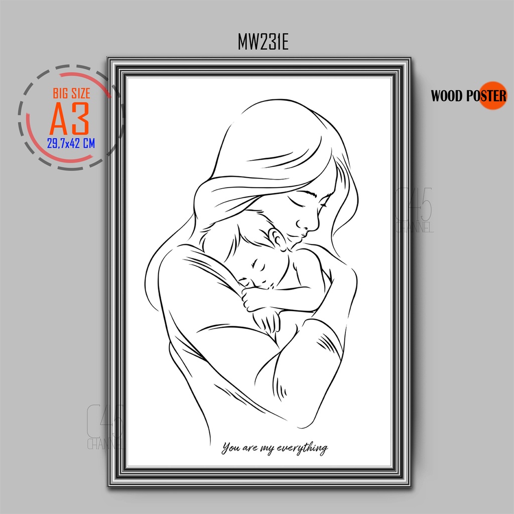 Poster Aesthetic Ibu Dan Anak Hiasan Dinding Kayu Mother And Child Dekorasi Ruang Klinik Mom And Baby Son Daughter