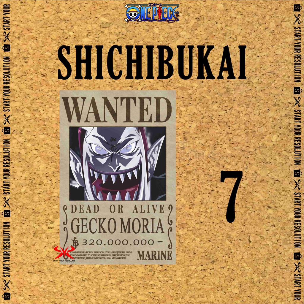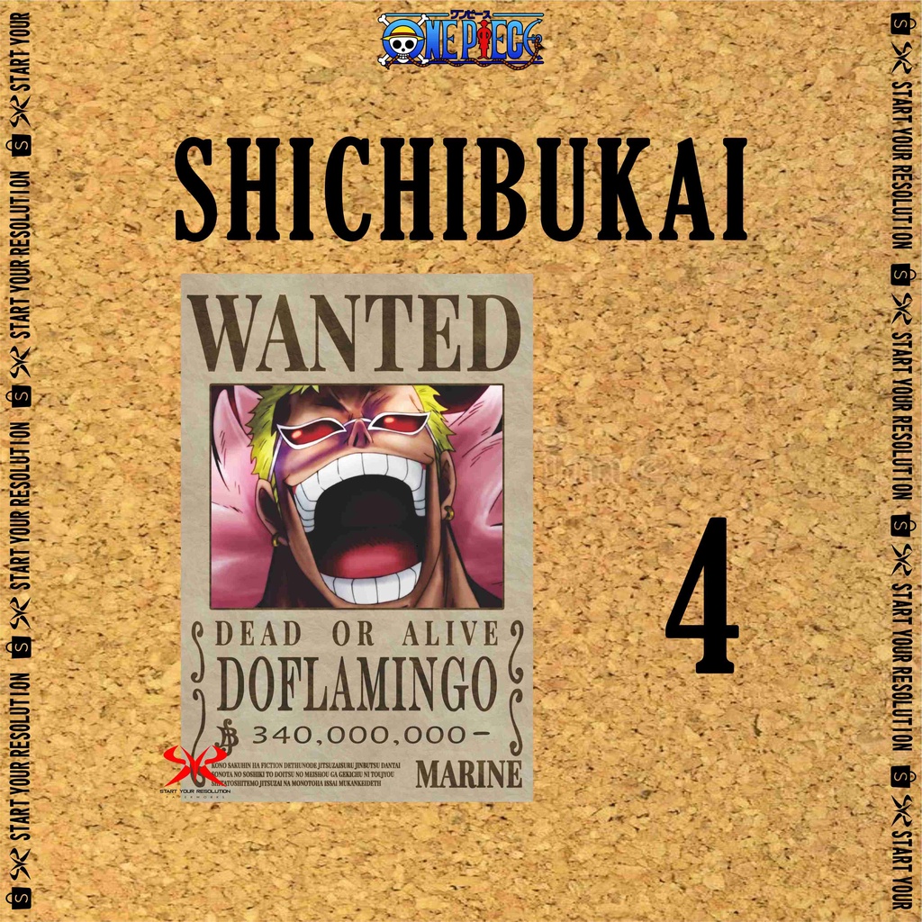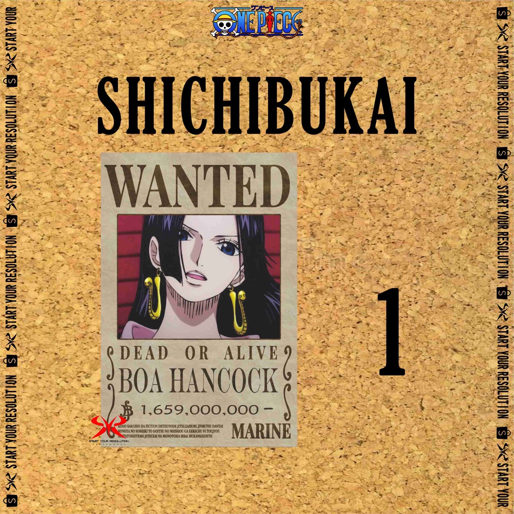Poster Anime & Manga Wanted One Piece Bounty Ouka Shichibukai / Boa Hancock / Buggy / Crocodile / Doflamingo / Dracule Mihawk / Kuma / Moria / Weevil - Buronan One Piece Bahan Tebal Finishing Doff - PS
