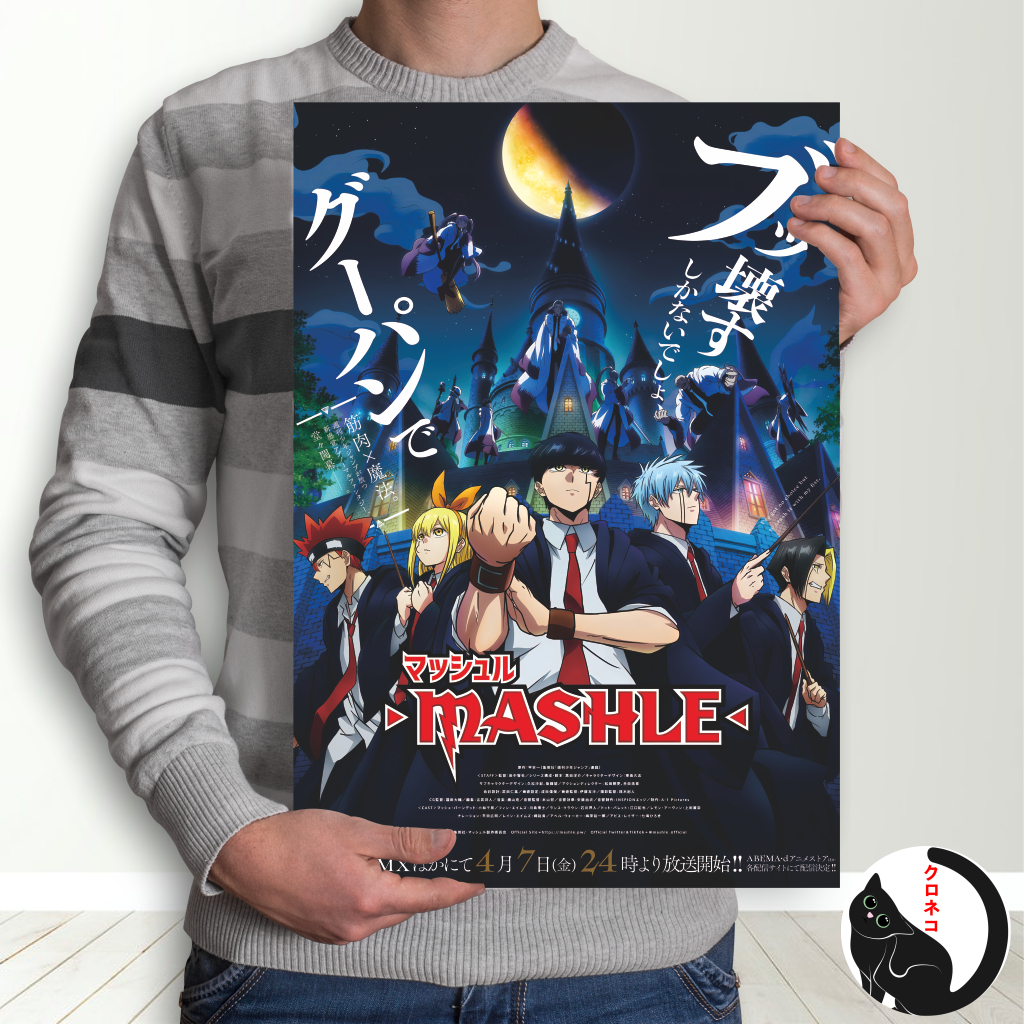 Poster Anime Mashle: Magic and Muscles HD Ukuran A3+ - Mash Burnedead, Lance Crown, Dot Barrett, Lemon Irvine