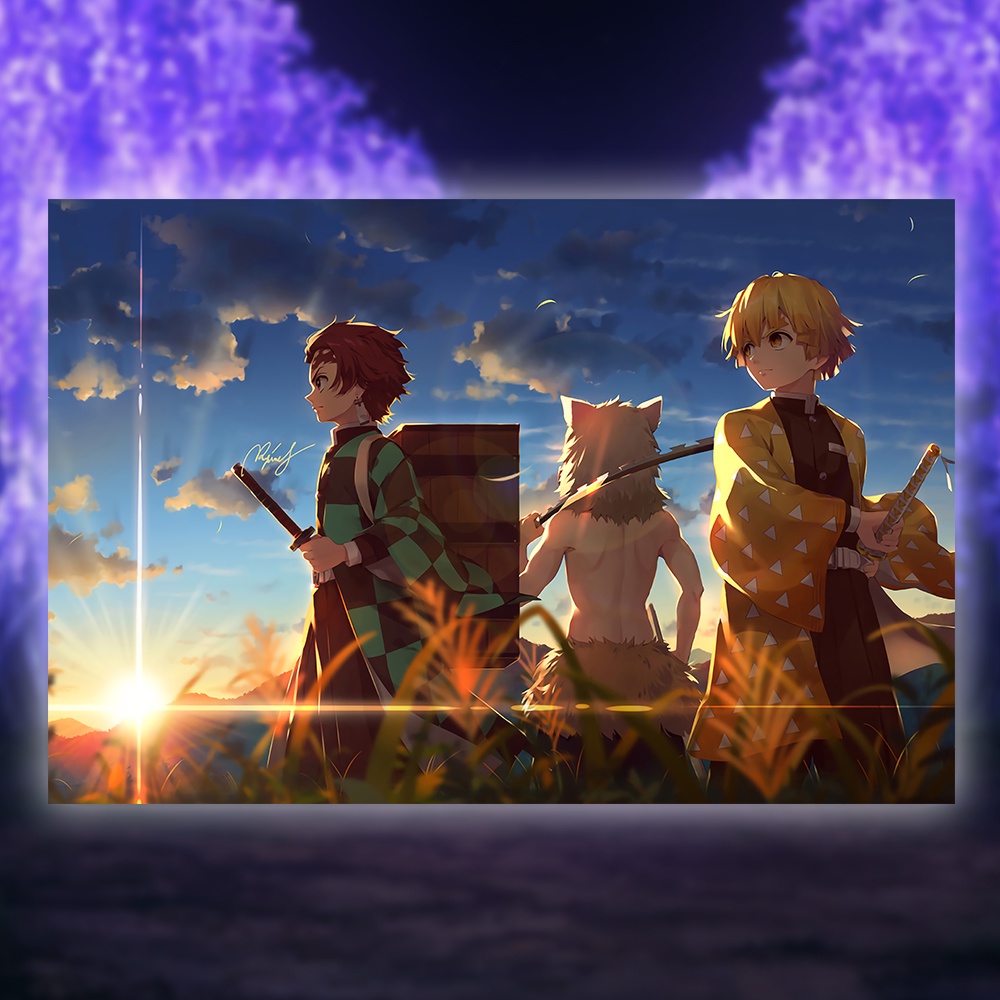 Poster Anime Wallpaper Demon Slayer / Kimetsu no Yaiba Horizontal 3 - SIZE A5 / A4 / A3 ( BEBAS CUSTOM )