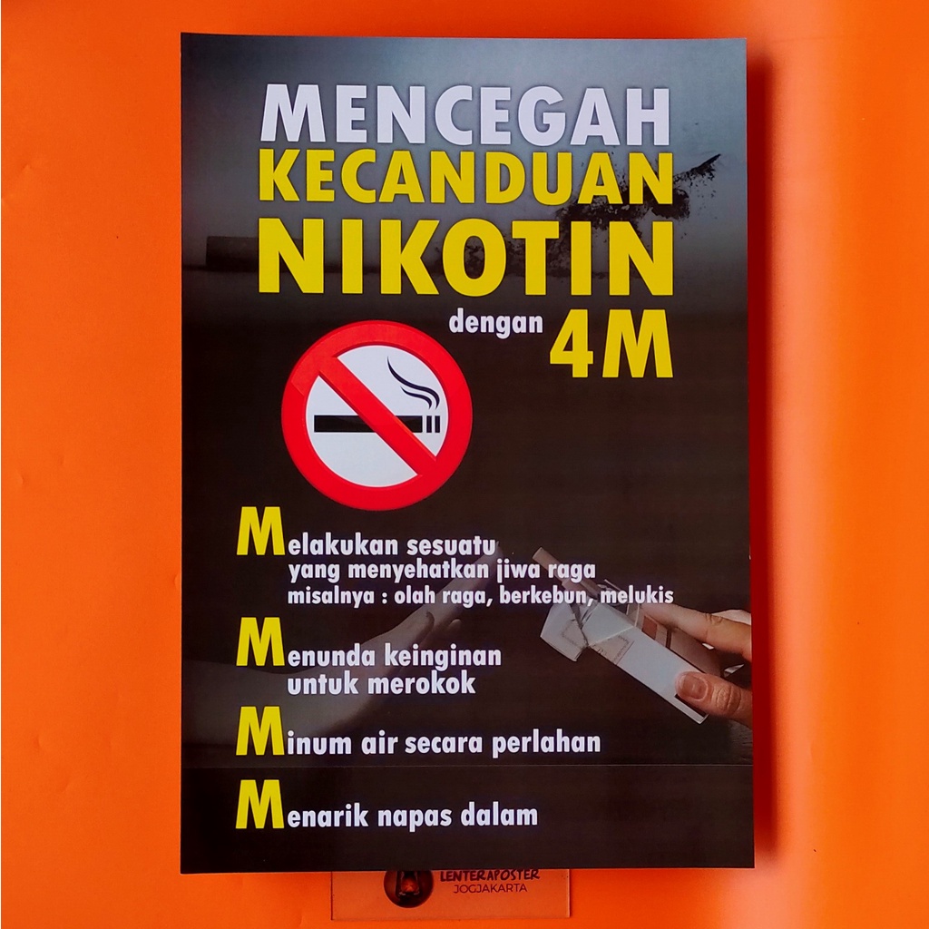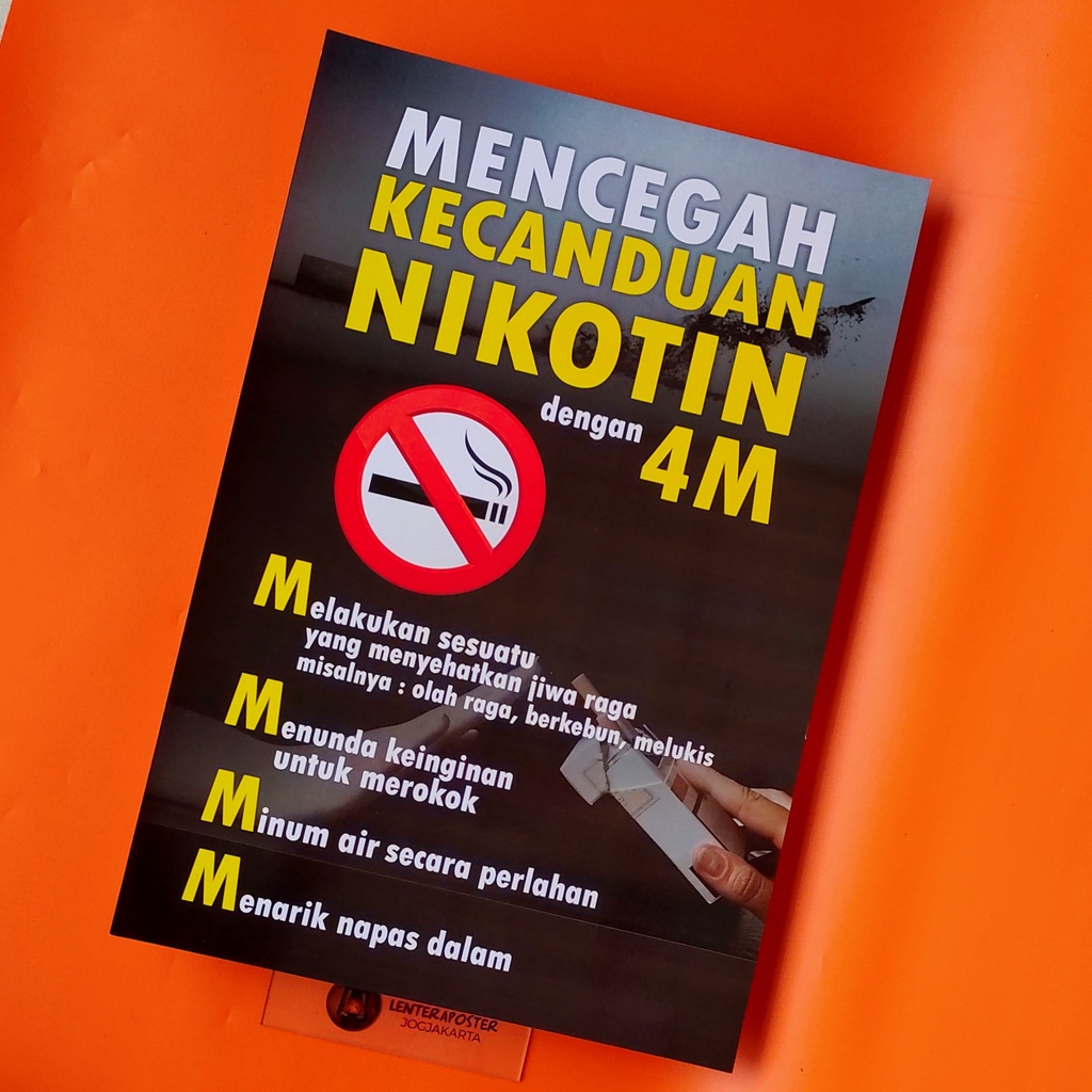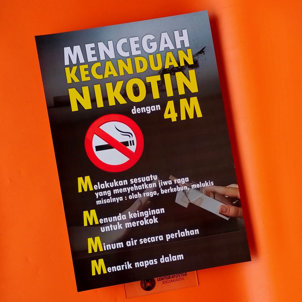 Poster Bahaya Merokok - Mencegah Kecanduan Nikotin dengan 4M. Ukuran 46.5 cm x 31.5 cm.
