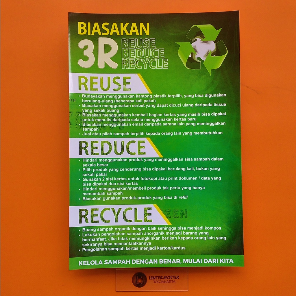 Poster Biasakan 3R - Reuse Reduce Recycle, Poster Pengolahan Sampah, Laminating Glossy