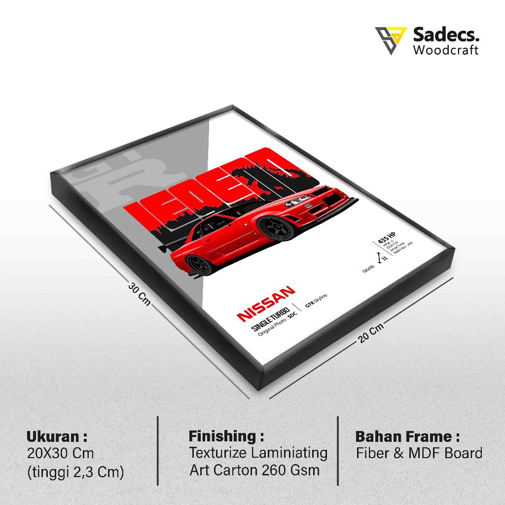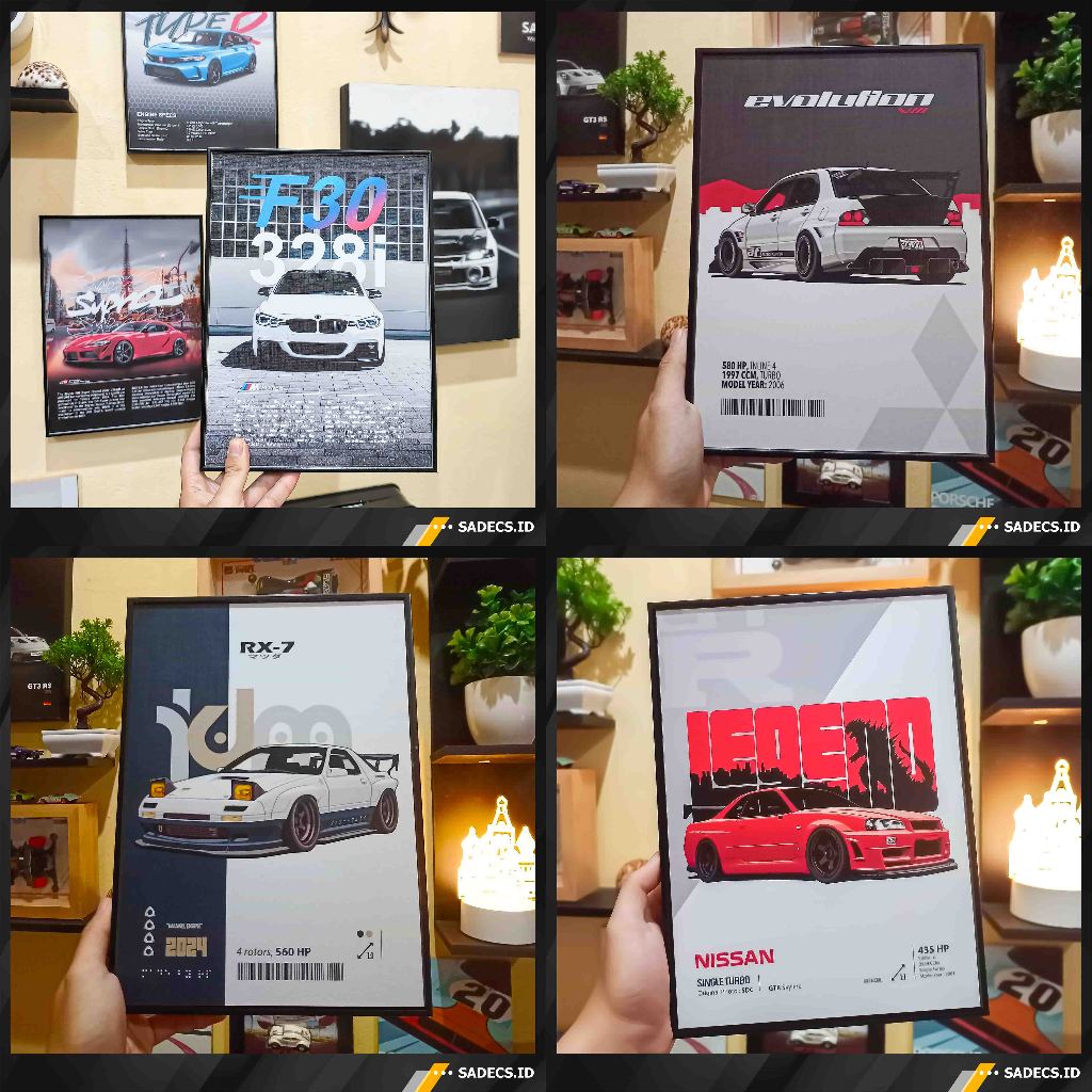 Poster Bingkai Mobil Sport JDM EDM ukuran 20x30 Cm (Frame Block)