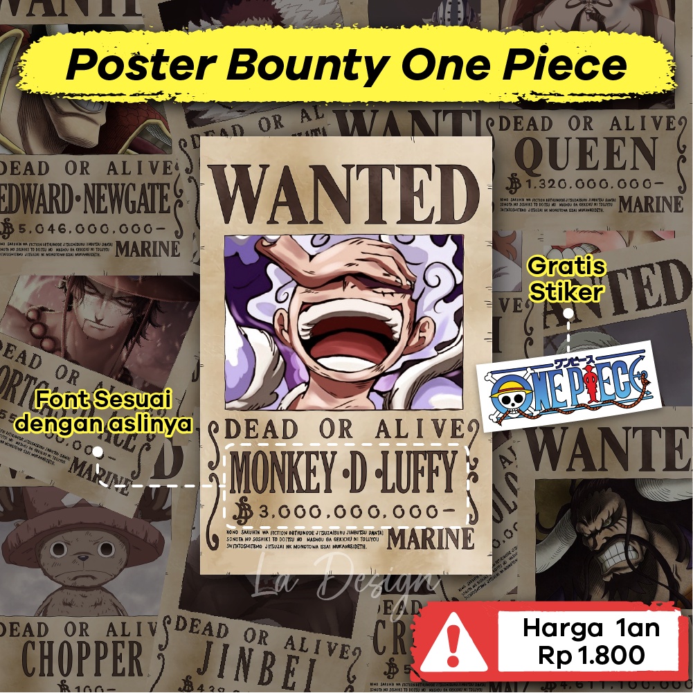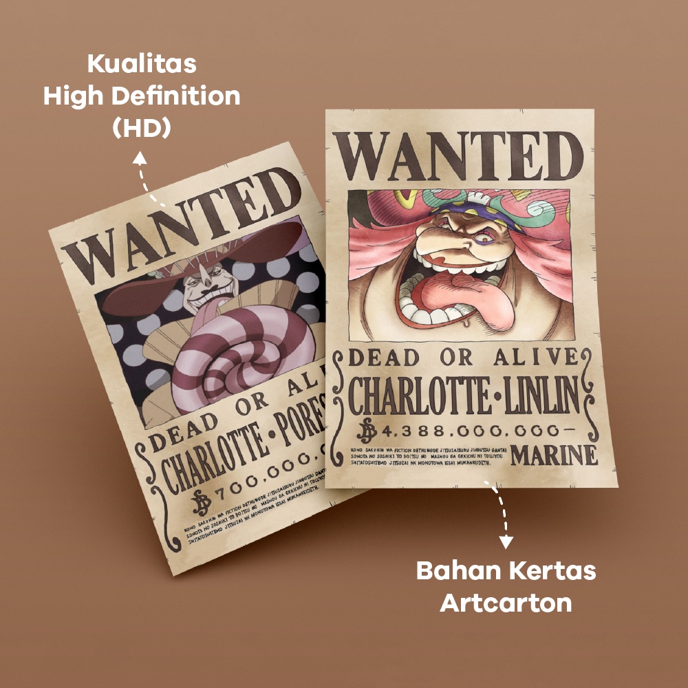 Poster Bounty One Piece Wanted Big Mom Pirates 1 SET ISI 10 LEMBAR Poster Dinding Kamar Aesthetic Anime One Piece Ukuran A6 A5 A4