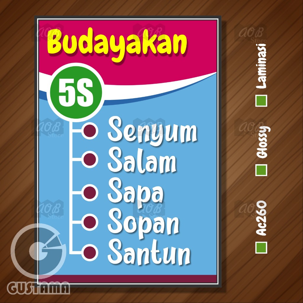 Poster Budayakan 5S Senyum Salam Sapa, Poster Edukasi Wipe and Clean 30x43cm