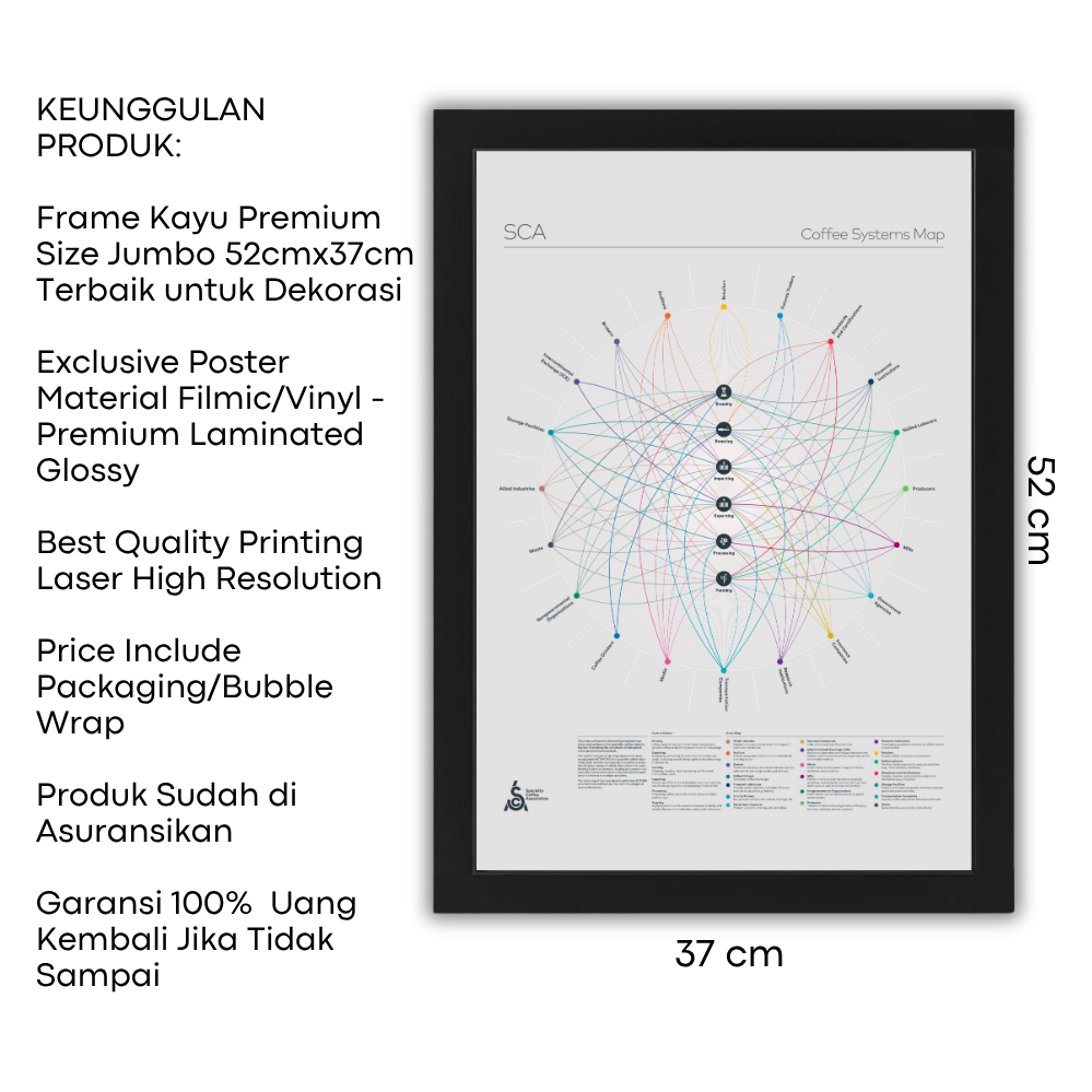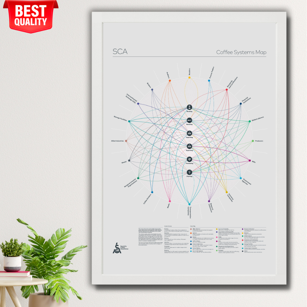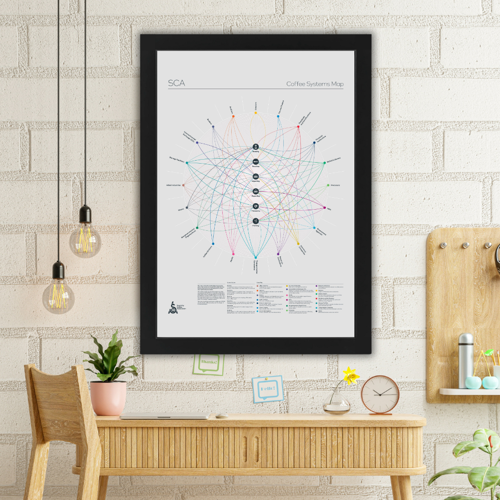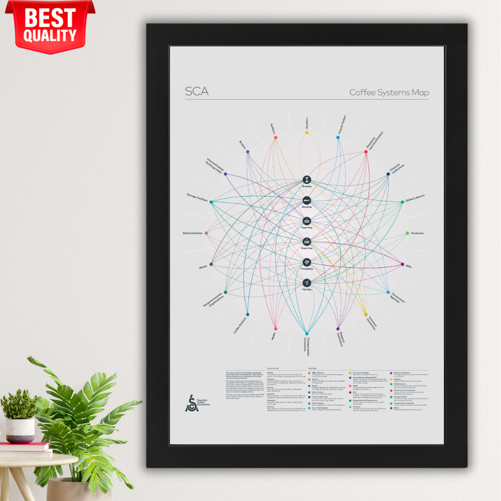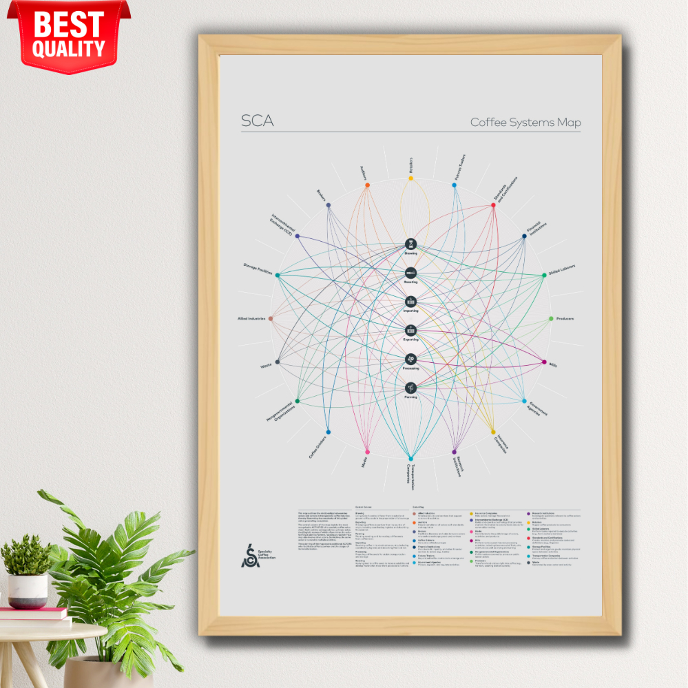Coffee Poster Systems Map A2 + Wood Frame – Full Coffee Supply Chain & Industry Roles Educational