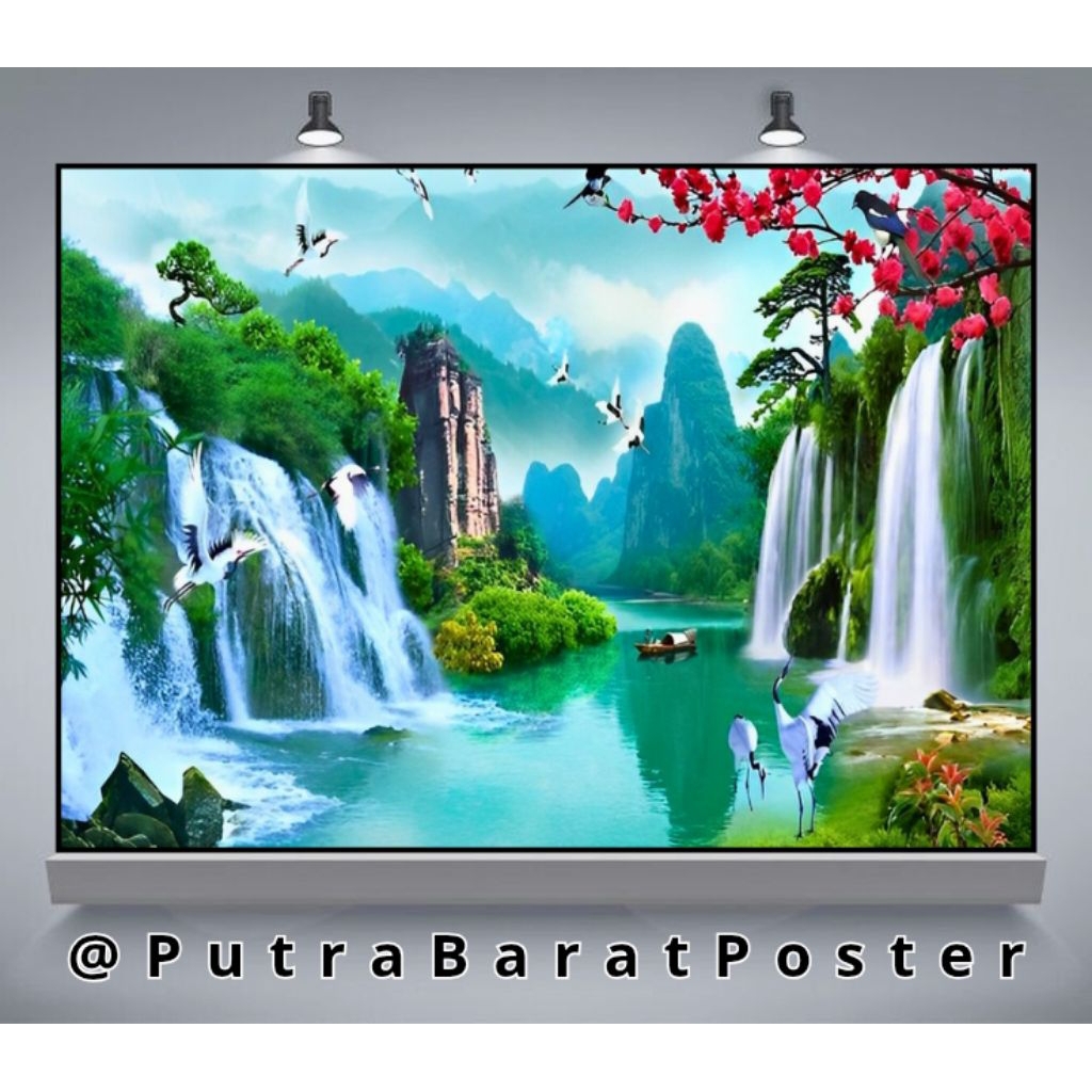 Poster Cetak Hiasan Dinding Jumbo Gambar Pemandangan Air Terjun Uk 100x70 Cm, Dekorasi Rumah Ruang kamar tidur ruang tamu minimalis bukan lukisan