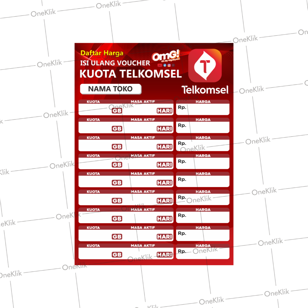 Poster Daftar Harga Paket Data Kuota / Poster Konter Daftar Harga Paketan / Poster Harga Kuota Murah