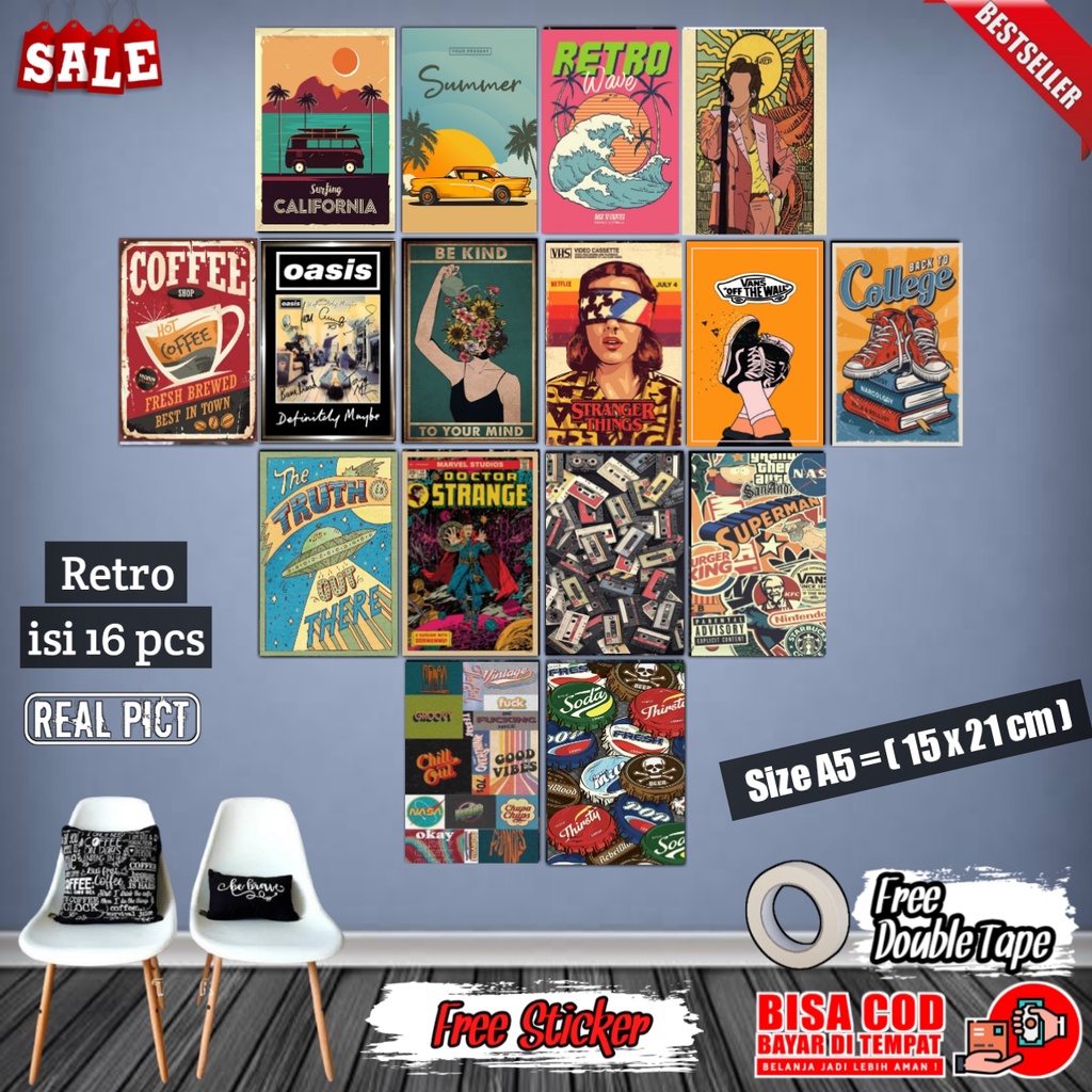 Poster Dinding Aesthetic 1 Paket isi 16 Pcs Gambar HD | Poster Aesthetic | Poster vintage