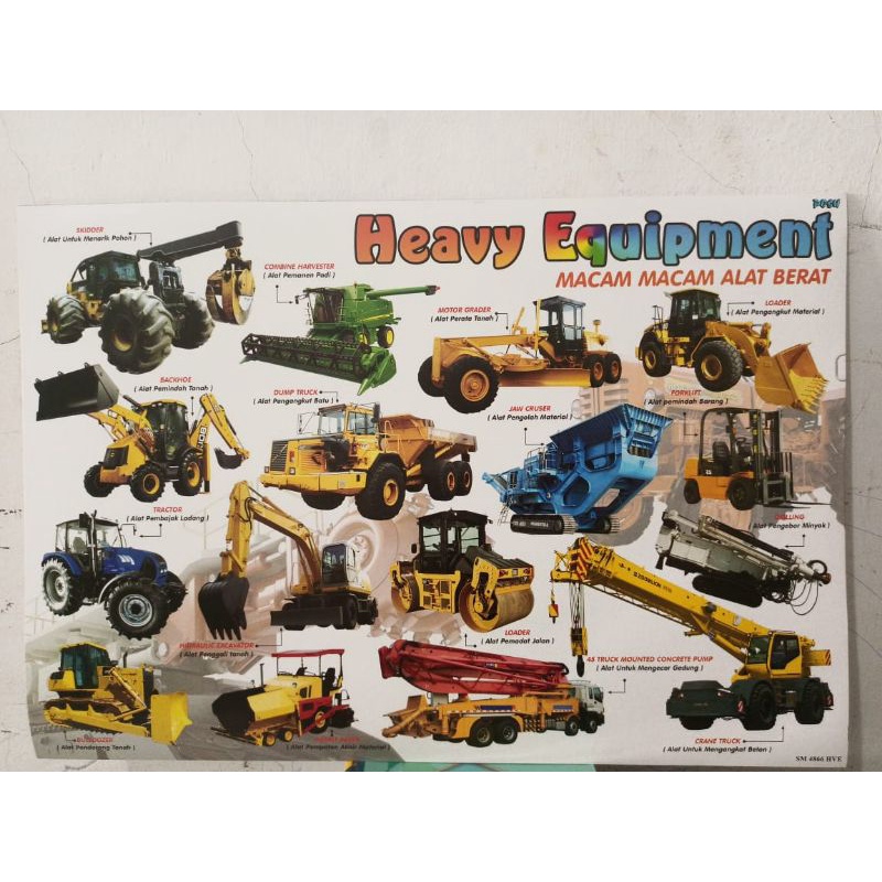 Poster Dinding Macam-Macam Alat Berat Poster Belajar Anak