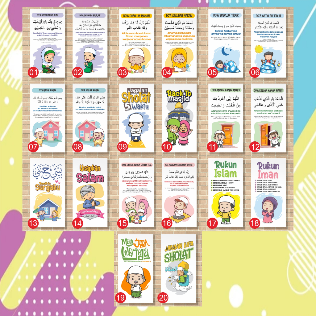 Poster Doa untuk Belajar Anak, Wall Decor doa Islami muslim, Poster dinding aestetic