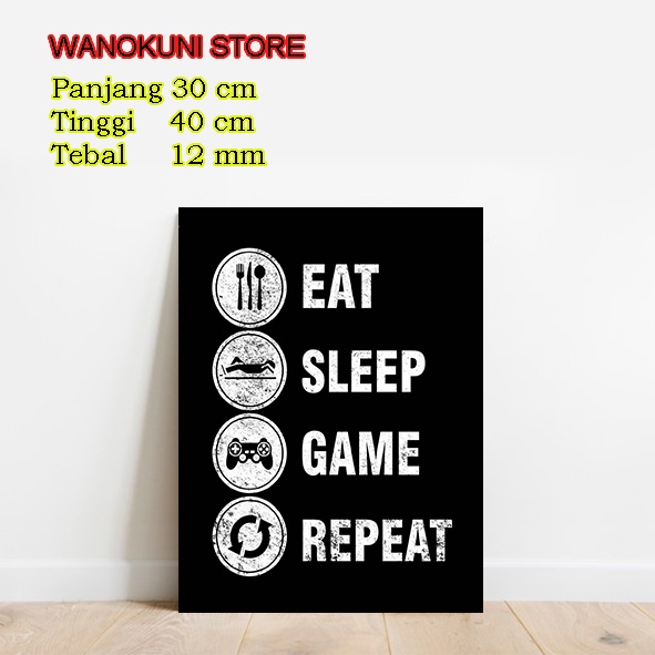 Poster EAT SLEEP GAME REPEAT Hiasan Dinding Poster Kayu Dekorasi