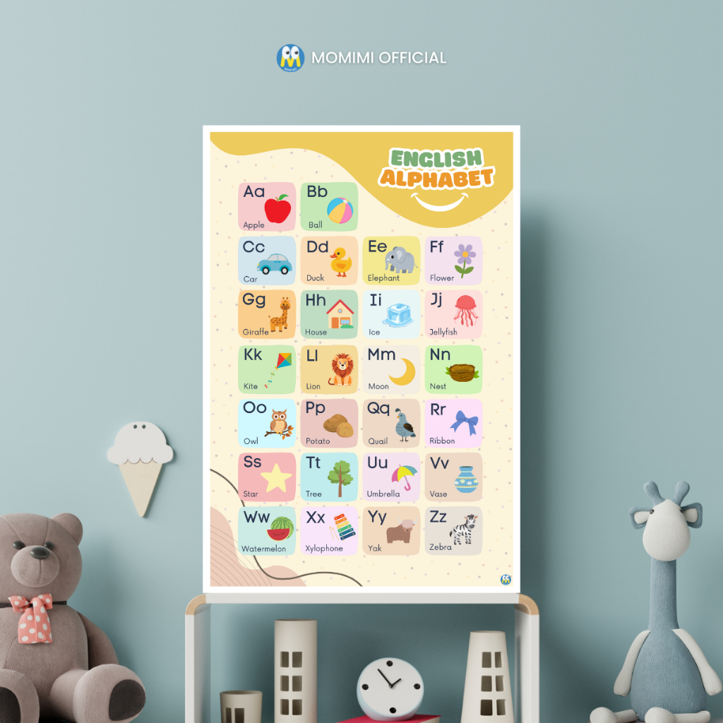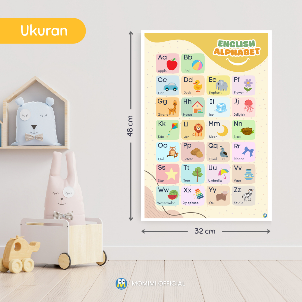 Poster ENGLISH ALPHABET Edukasi Belajar Huruf Abjad Alfabet untuk Anak Usia Dini PAUD, Toddler, TK