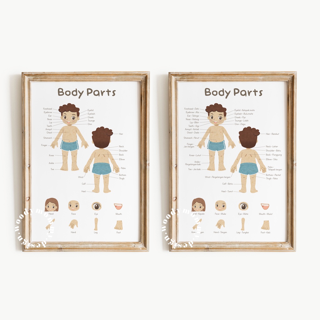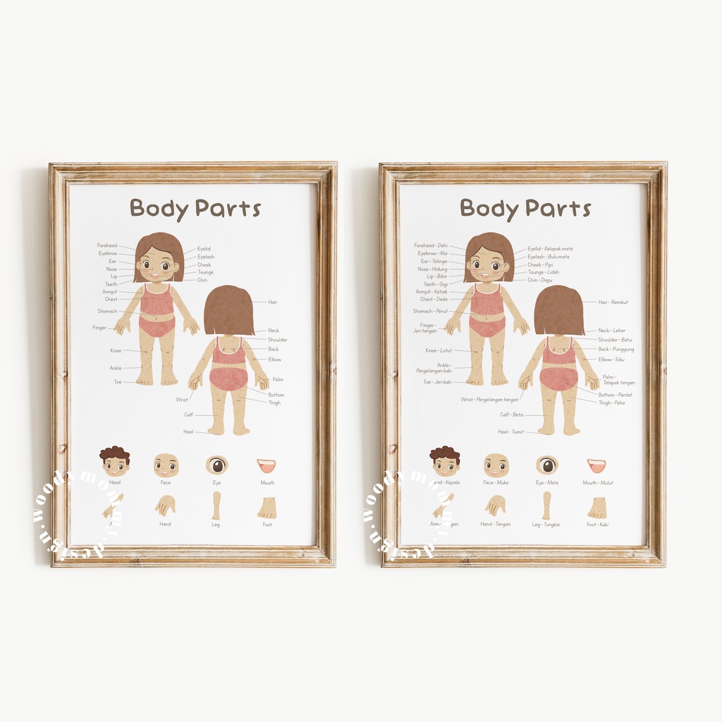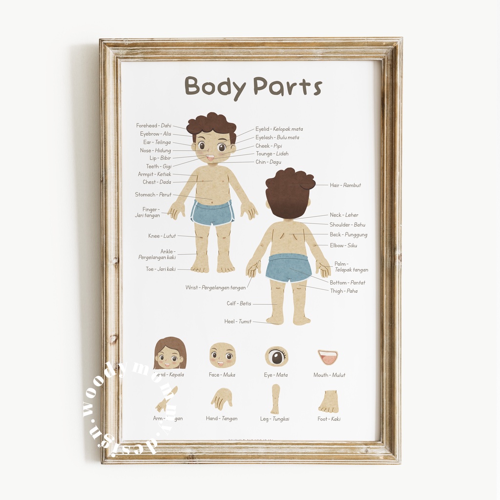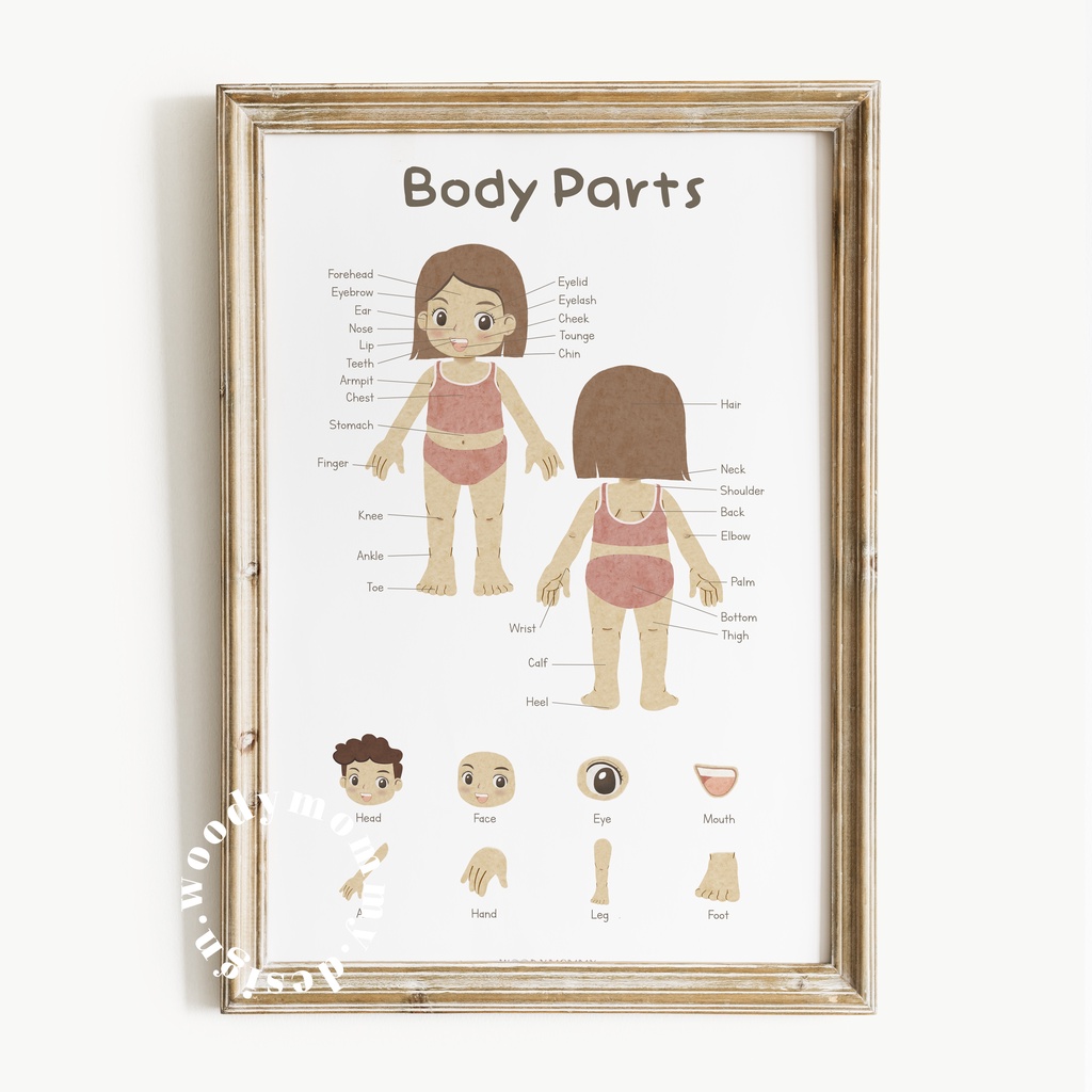 Poster Edukasi Anak Balita Anggota Tubuh - Body Parts Preschooler Wall Art - Bagian Badan