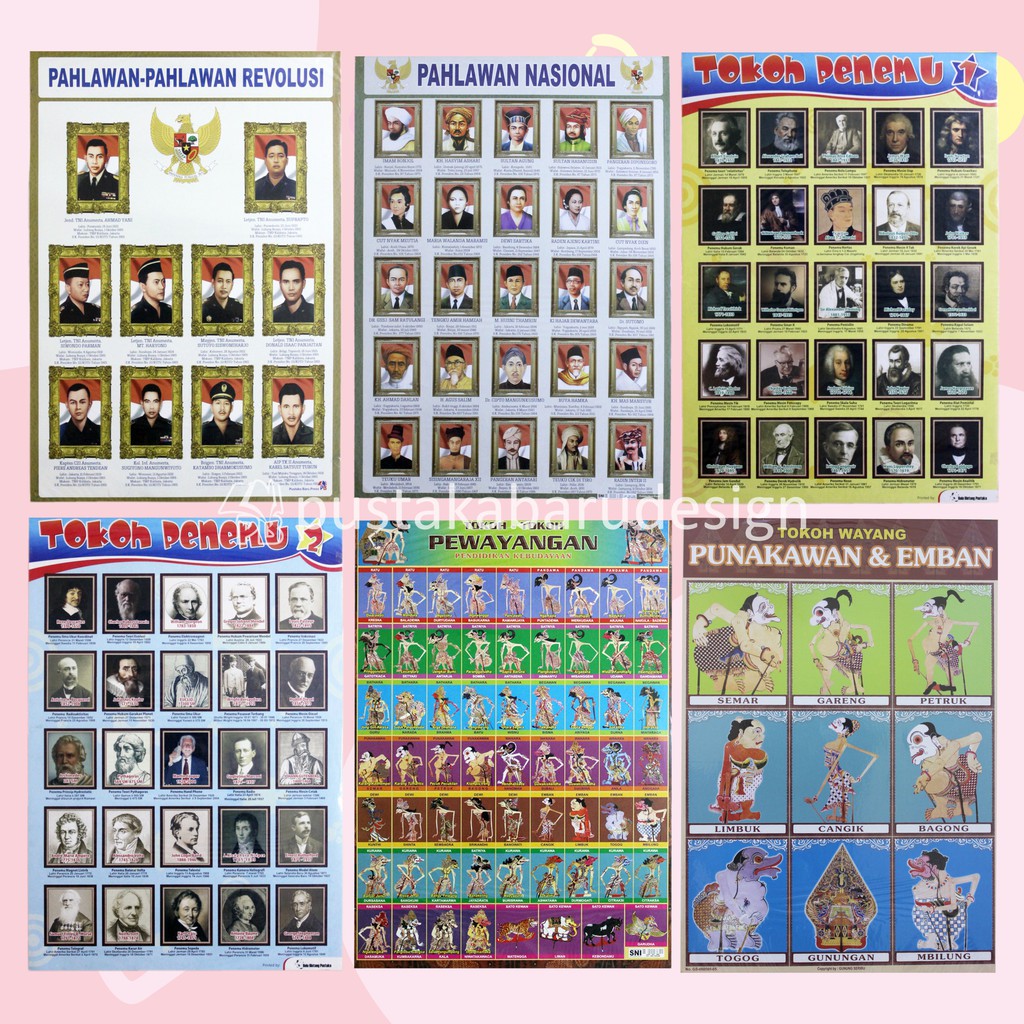 Poster Edukasi Anak / Gambar Edukasi Anak / Poster Anak Lembaran Tokoh Penemu Pahlawan Revolusi Nasional Pewayangan Punokawan Dan Emban