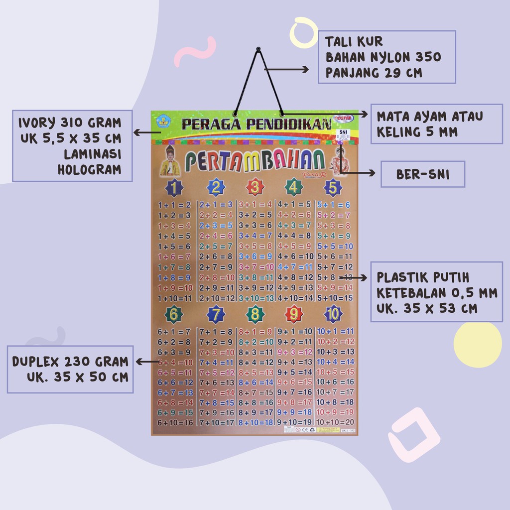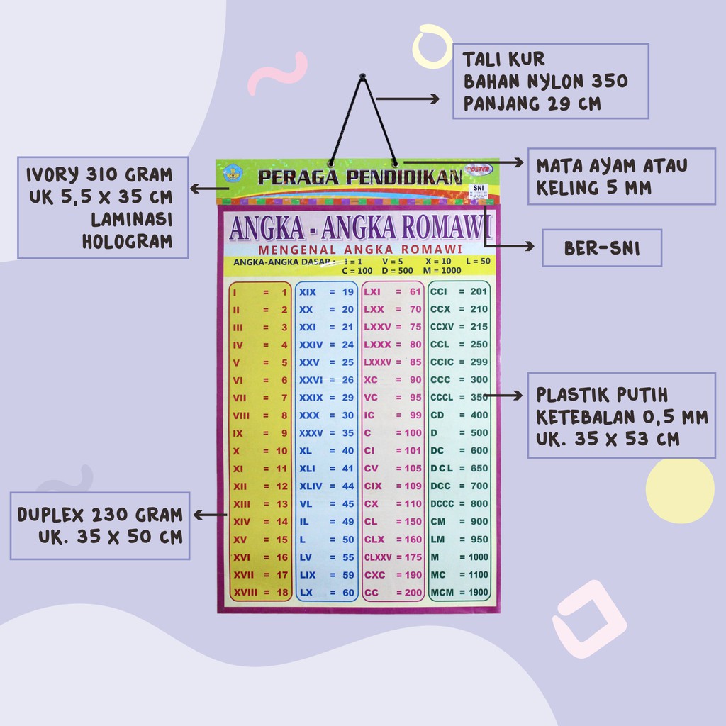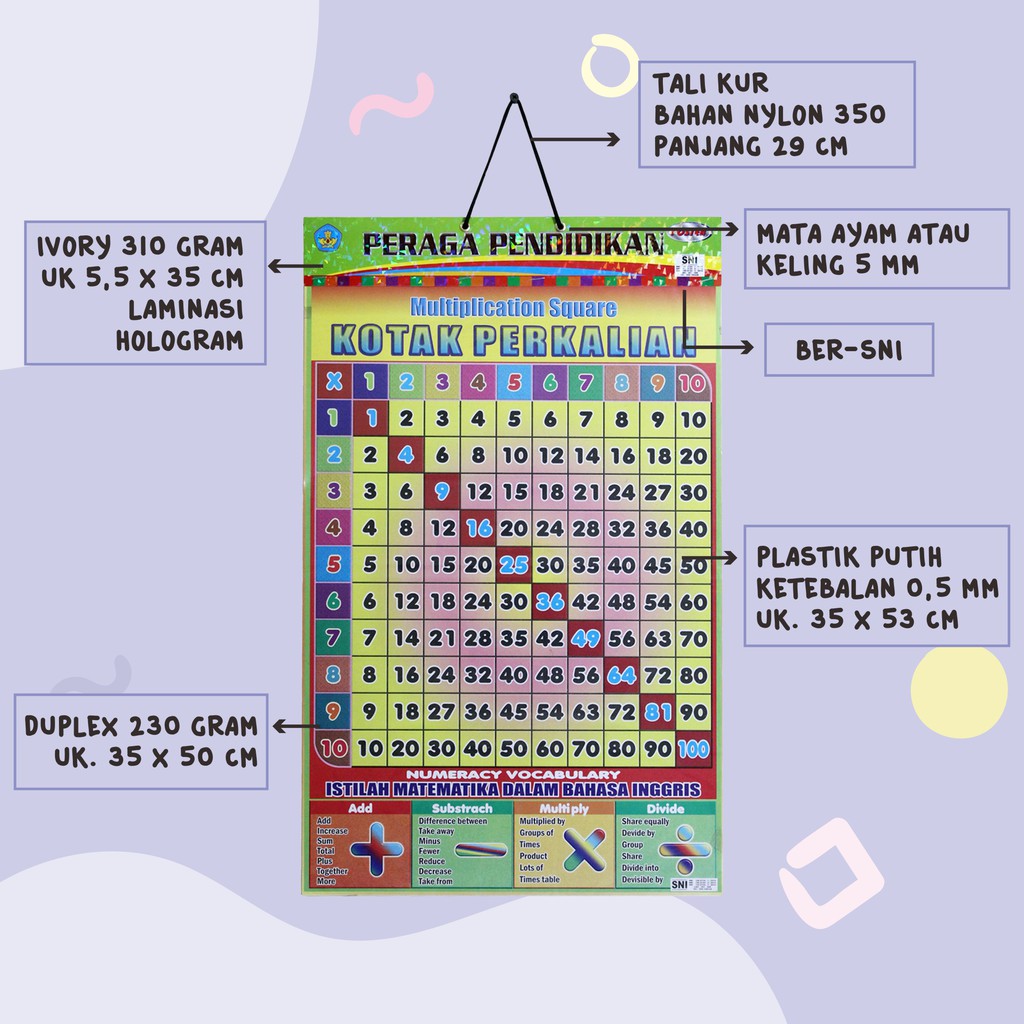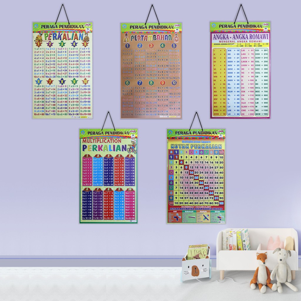 Poster Edukasi Anak / Gambar Edukasi Anak / Poster Belajar Anak Bingkai : Perkalian Pertambahan Angka Romawi Perkalian Kotak Perkalian