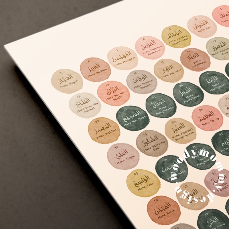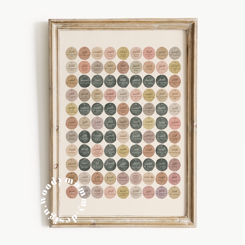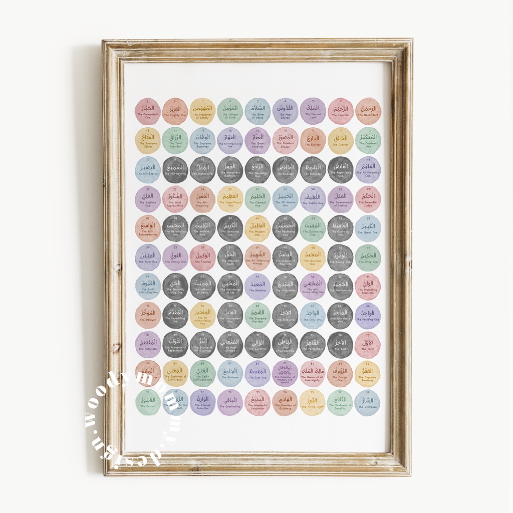 Poster Edukasi Anak Islami Asmaul Husna - 99 Nama Allah - 99 Names of Allah - Islamic Kids Wall Art