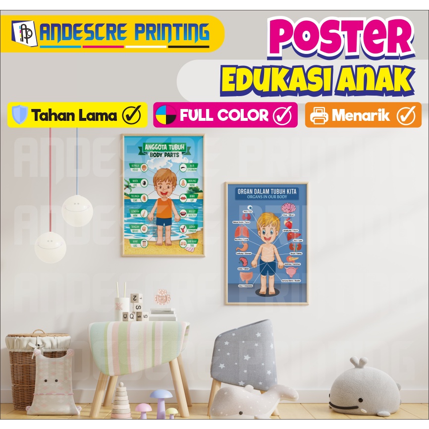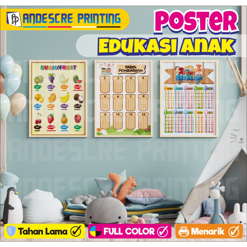 Poster Edukasi Anak Lucu & Menarik Untuk Mengasah Memori Anak Ukuran A3+ ( 32x48cm )