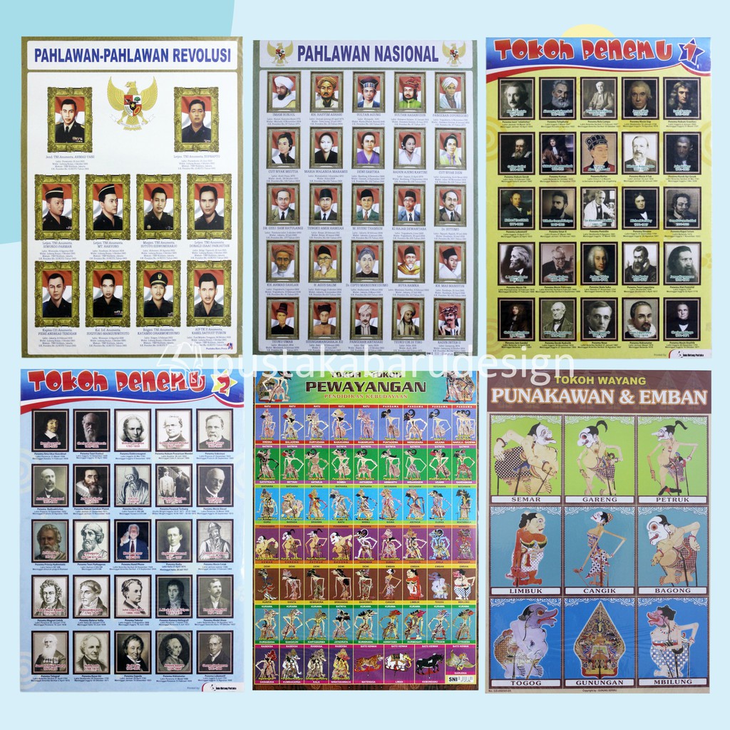 Poster Edukasi Anak Mainan Edukasi Anak Lembaran Tokoh Penemu Pahlawan Revolusi Nasional Pewayangan Punokawan Dan Emban