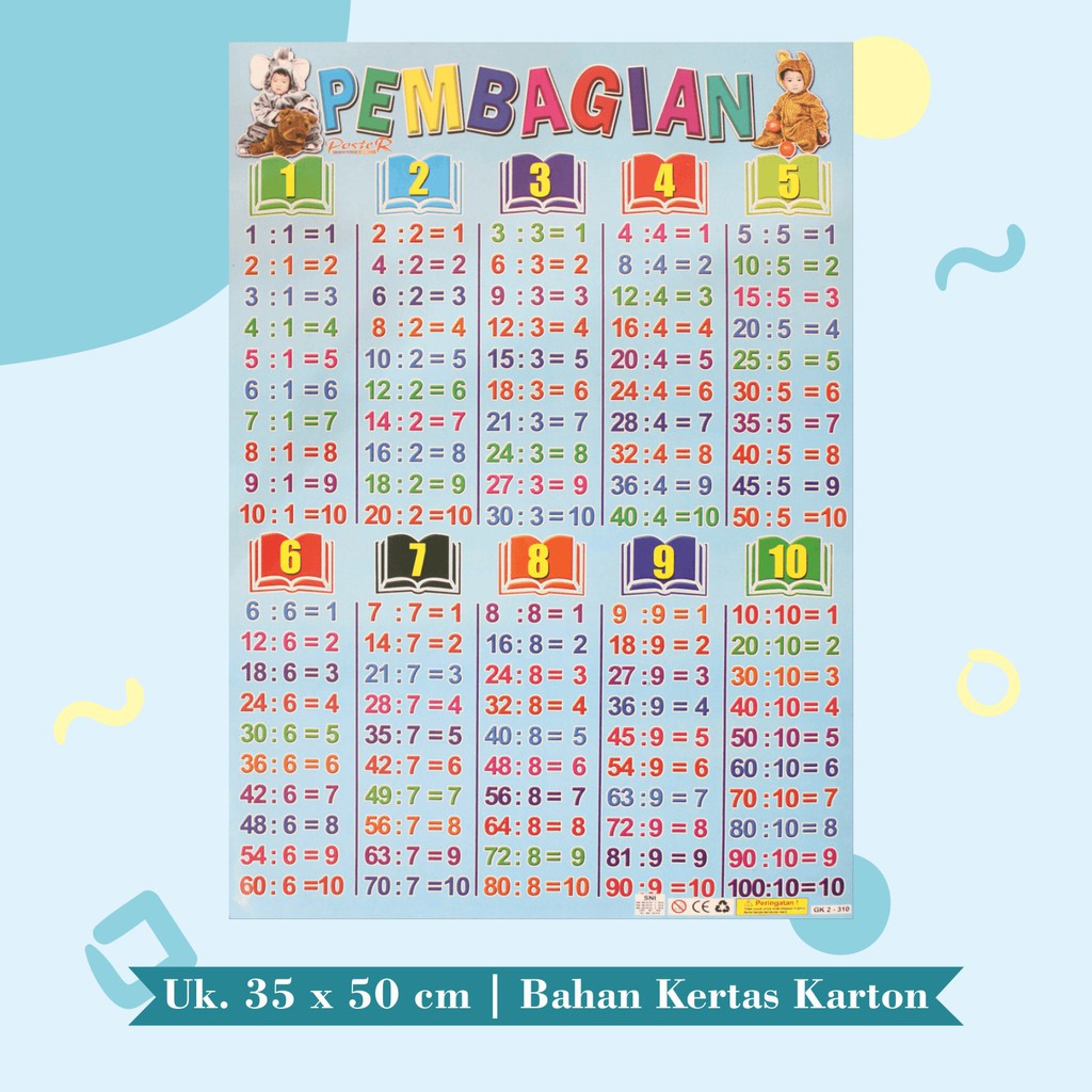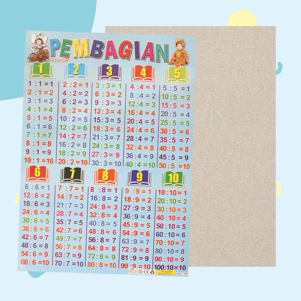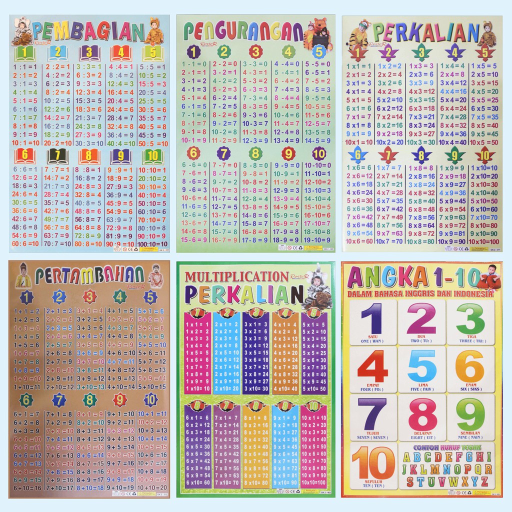 Poster Edukasi Anak Mainan Edukasi Anak lembaran pembagian pengurangan perkalian Multiplication Perkalian Angka 1-10 angka