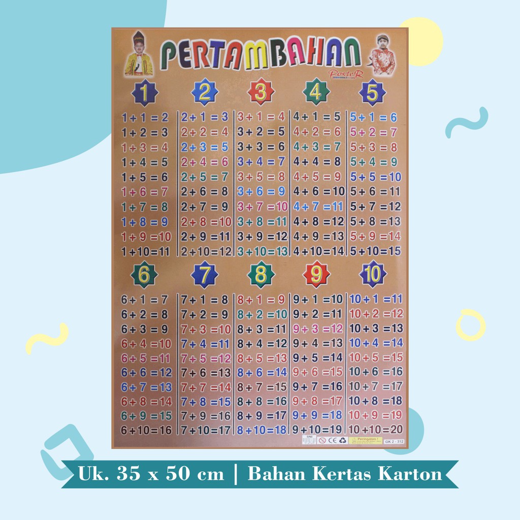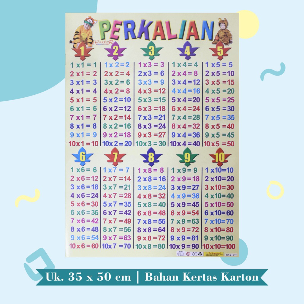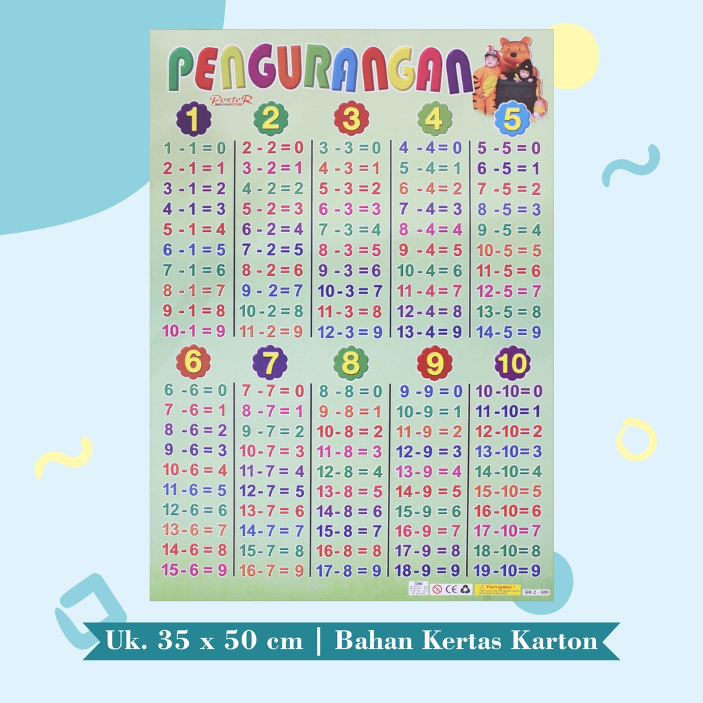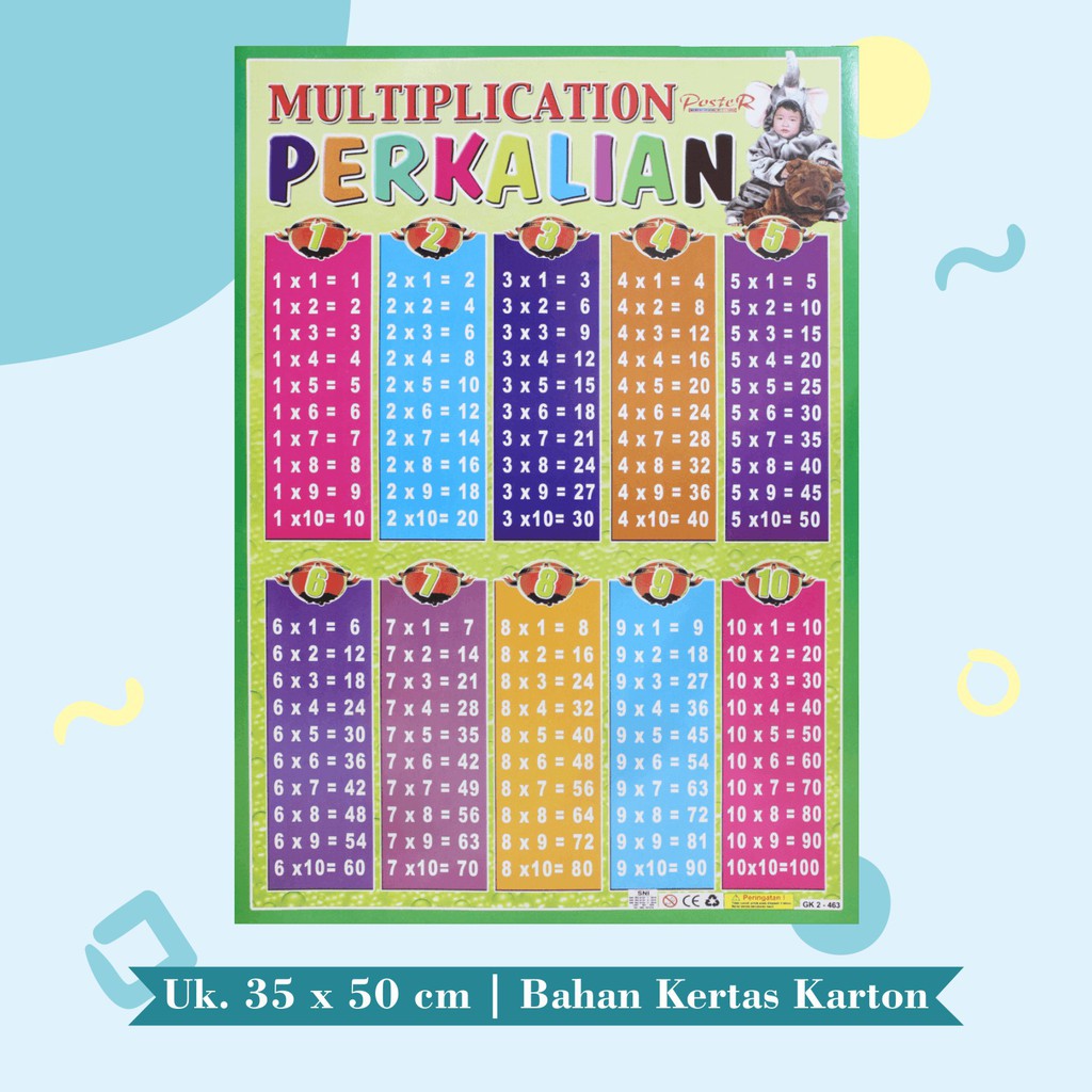 Poster Edukasi Anak Mainan Edukasi Anak lembaran pembagian pengurangan perkalian Multiplication Perkalian Angka 1-10 angka